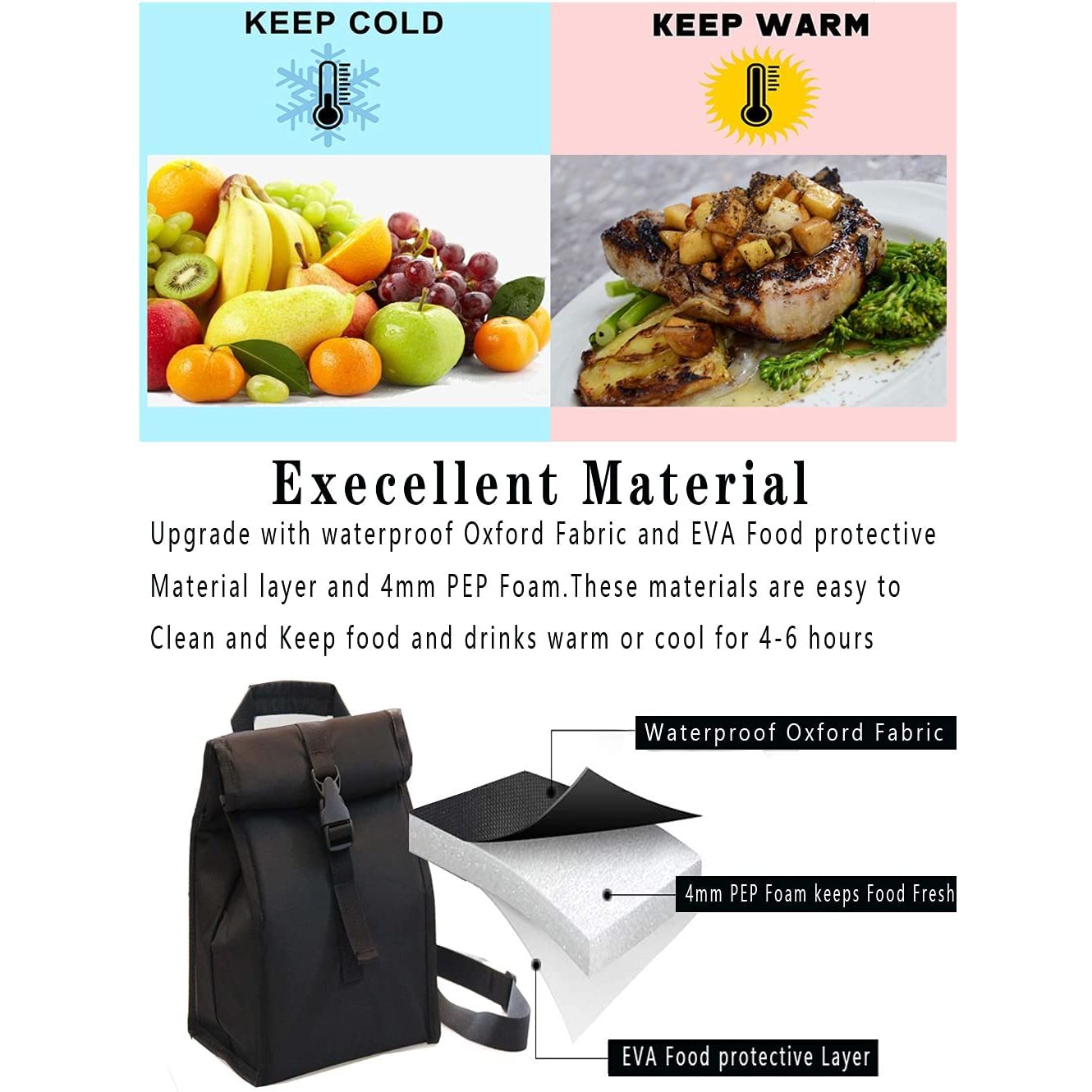 Geniş Açık Tasarım ve Büyük Kapasite 9,5 x 7 x 13,4 inç kapasiteli öğle yemeği çantaları, tüm gün boyunca tüm yiyecek ve atıştırmalıklarınızı paketlemek için harika. Çantanın üstü 10 "L x 7,5" W'ye kadar açılabilir, Öğle yemeği kabı YATAY olarak girip çıkmak için, sıvının kabın dışına sızmasını ve torbanın içinde kirlenmesini önleyin, temizlik süresinden tasarruf edin. ayrıca ön ve arka cebe bıçak ve çatal telefon, cüzdan, anahtarlar, kartlar ve diğer küçük eşyaları koyabilirsiniz. - Mükemmel Alüminyum