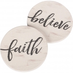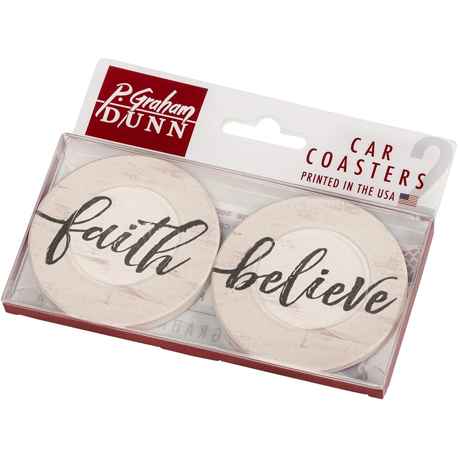 Eşleşen 2 bardak altlığı olarak satılır; "İnan" ve "İnanç" duygu okuma özellikleri - Bardak altlıkları, yetenek ve işlevsellik dolu emici seramikten yapılmıştır; Alt kısım, temizlik için araçtan kolayca çıkarılmasını sağlayan eğimli bir kenara sahiptir - Çoğu orta konsolda standart boy bardak tutuculara uyar - P. Graham Dunn ürünleri ABD'de tasarlanmış ve üretilmiştir; Güzel ev dekoruyla sonuçlanan zanaatkarlar tarafından el yapımıdır.