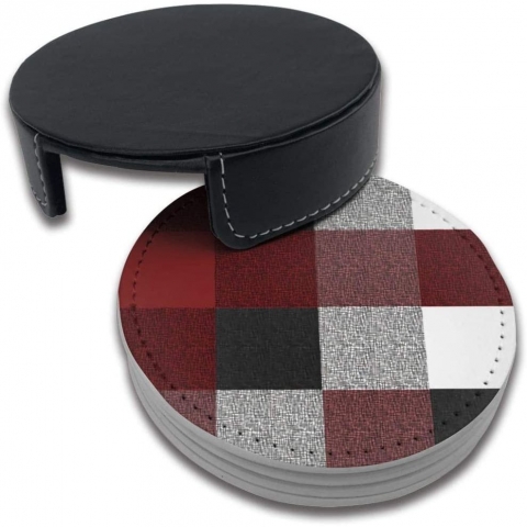 MOLIAN Deri Bardak Altlığı(Kırmızı Kareli, 6 Adet)