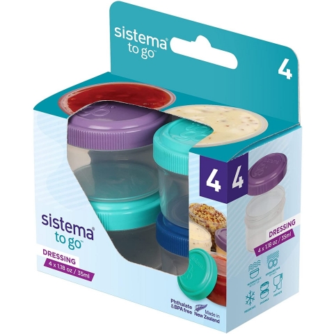 Salata soslarını yemeye hazır olana kadar ayrı tutmak için ideal olan küçük kaplar - İçeriği muhafaza etmek için vidalı kapaklar - Okula dönüş, öğle yemeği, yemek artıkları ve daha fazlası için harika - BPA içermeyen plastik - Üst raf bulaşık makinesinde yıkanabilir ; Buzdolabında ve dondurucuda güvenli; Kapaksız mikrodalgaya dayanıklı - Dört adet 1,18 ons içerir. yuvarlak plastik kaplar.  Renkler karışık gönderilmektedir.