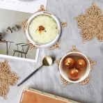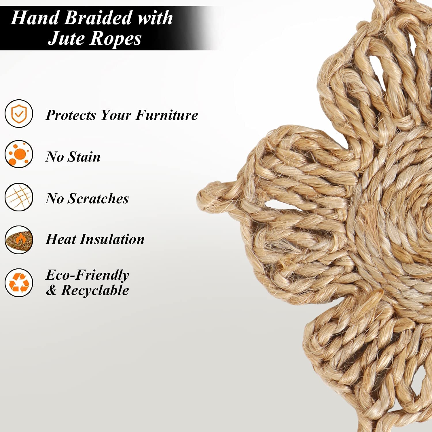 HomeStorie Güveçler için yemek masası için 6'lı el örgüsü jüt bardak altlığı. - Yemek masası için ısı yastığımız, herhangi bir kimyasal madde eklemeden toksik olmayan ve çevre dostu jüt kullanarak zanaatkarlar tarafından %100 el yapımıdır. Not: Bunlar tamamen el yapımı olduğundan renk ve tasarım biraz değişebilir. - Gereçler için HomeStorie masa altlığı 13 mm kalınlığındadır - Yemek masası için mükemmel bir sıcak kap standı yapar. Bu jüt yan sehpa paspasları kaymaz ve mobilyalarınızı çizmez. - Mükemmeldir.