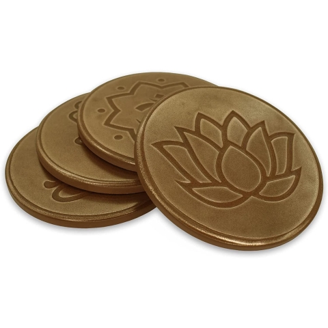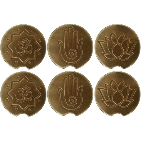Yoga Aşığı; Bakır, fırçalanmış nikel, altın ve demir kaplamalarda bulunan bu aziz kutsal sembollerle gün boyunca, evde veya arabanızda iyi yoga hislerinizi sürdürün - Koruma; 4 adet sıcak veya soğuk içecek altlığı ile masanızı veya masanızı nem halkalarından ve lekelerden koruyun; Set ayrıca araçlarınızın bardaklıklarını temiz ve korumalı tutmak için 6 uyumlu araba altlığı içerir; Mantar desteği çizilmez veya kaymaz.