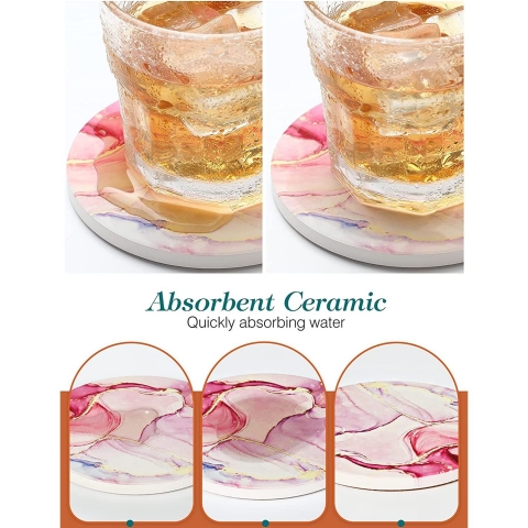 Mükemmel Kalite: Seramik bardak altlıklarımız, yüzeyde emici seramik ve altta yumuşak mantar kullanır, dayanıklı, su geçirmez ve kaymaz özelliklere sahiptir, mobilyalarınızı lekelerden, su izlerinden ve çizilmelerden korur. - Dayanıklı Demir Tutucu: Her sette içecek altlıklarını düzenlemek veya saklamak için bir demir tutucu bulunur, leke tutmaz, çizilmez ve paslanmayacaktır. - Harika Tasarım: 6 adet seramik bardak altlığı ve 1 adet demir tutucu ile birlikte gelir, bu içecek altlıkları önlemeye yardımcı olabilir.