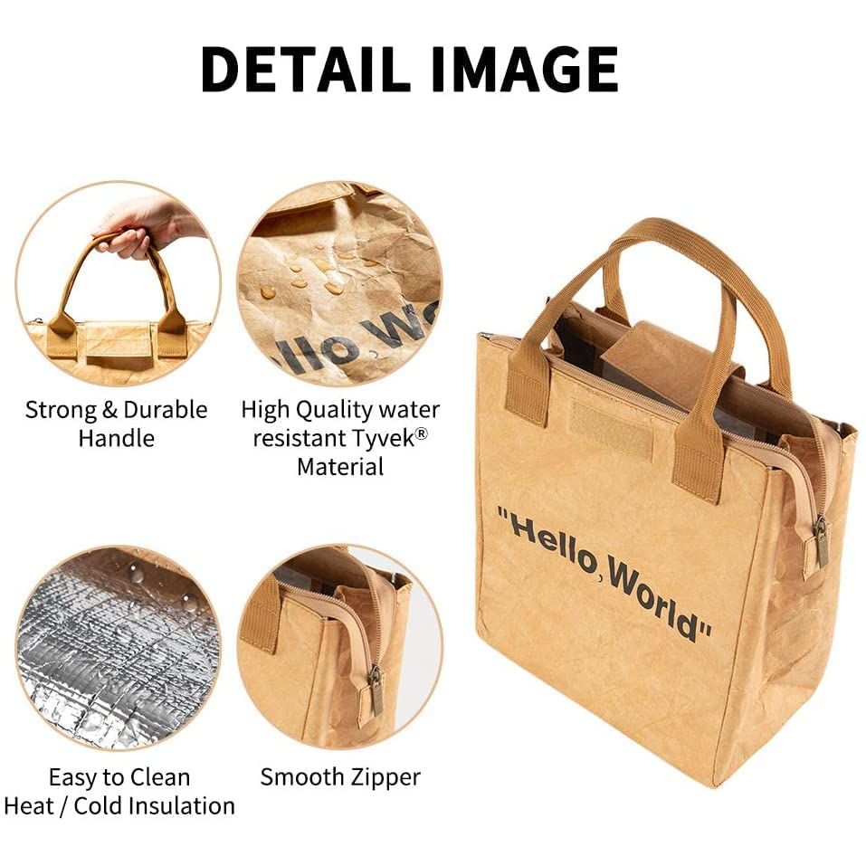 Güçlü, Dayanıklı ve Yeniden Kullanılabilir Kağıt Gibi Malzeme VonNova Öğle Yemeği Çantalarının kökeni, Kahverengi Kağıt Öğle Yemeği Çantalarından geldi. Kağıt faktörünü andıran dayanıklı Tyvek malzemeden yapılmıştır ((KAĞIT DEĞİLDİR!); Tyvek suya, aşınmaya, bakteri girişine ve yaşlanmaya karşı dayanıklıdır.Kadınlar ve erkekler için VonNova Öğle Yemeği Çantaları pratik, yenilikçi ve yeniden kullanılabilir. Her VonNova Öğle Yemeği Çantası Tek kullanımlık plastik poşet ve kağıt poşetlerin yerini alarak çevreye yardımcı olur. - Geniş Kapasiteli & Yalıtımlı İç Mekan Yalıtımlı termal astar ile üretilen VonNova yalıtımlı öğle yemeği çantası, yiyeceklerinizi saatlerce taze tutar.Yemekleriniz 6 saate kadar soğuk ve sıcak tutulur. 3 saate kadar. İç mekan, çeşitli kap boyutlarını, içecekleri, meyveleri ve atıştırmalıkları saklamak için 9,8" x 6,1" x 11" (U*G*Y) ölçülerinde daha yüksek bir kapasite için tasarlanmıştır. Ek iç cep ile, aynı zamanda Anahtarları, telefonları, kartları vb. saklamak için uygun- Kolay Bakım Nemli bir bezle silin ve kurumaya bırakın. Çamaşır suyu kullanmayın. Çamaşır makinenizde veya kurutma makinenizde kullanmayınız. Kuru temizleme yapmayın veya ütü kullanmayın. Tyvek, kağıda benzeyen benzersiz hafif dokusuz bir malzemedir. Kırışıklıklar, kırışıklıklar normaldir ve VonNova Lunch Box'a şık ve otantik bir görünüm sağlar.
