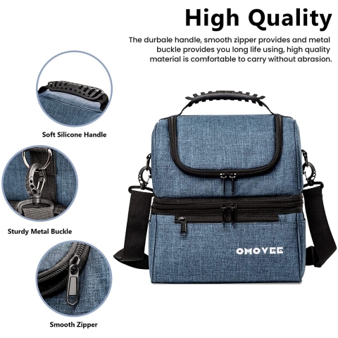 Büyük Kapasite: OMOVEE öğle yemeği kutusu 10.23" U x 7.67" G x 10.62"Y ölçülerindedir, 12 kutu içecek (330ml) alabilir ve 2-3 kişinin öğle yemeği ihtiyaçlarını kolayca karşılayabilir. - Mükemmel yalıtım: Dayanıklı ve giyilebilir Oxford kumaş dış yüzey ile sızdırmaz PEVA, EPE köpük iç astar eklenerek 4-6 saat ısı yalıtımı sağlayan ısı presleme ile sorunsuz bir şekilde sentezlenir. öğeler.