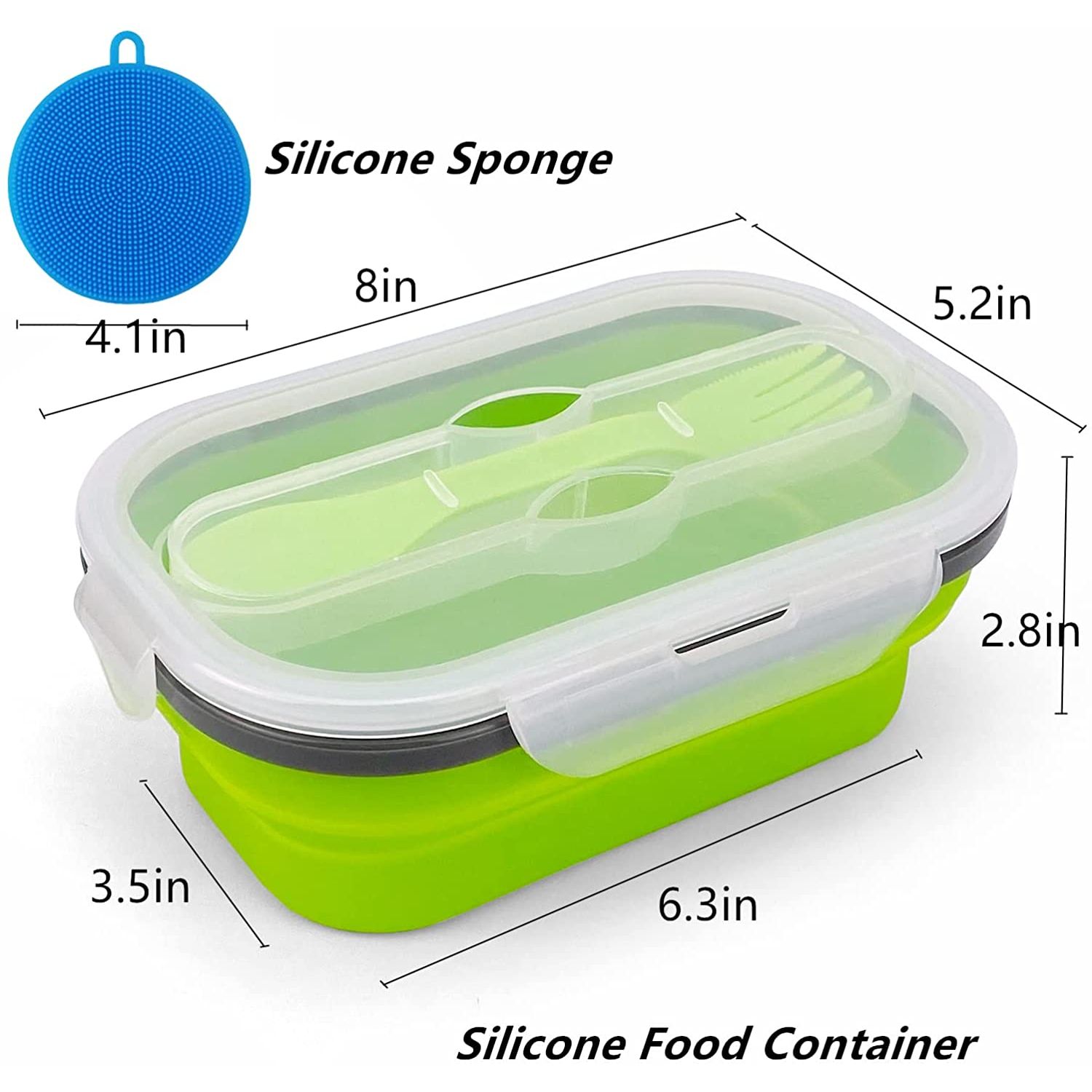 BOYUT: Katlanabilir gıda kabı 800 ml (yaklaşık 27 oz) gıda alabilir. Genişletilmiş aşamada, 8 inç(U) x 5,2 inç(G) x 2,8 inç(Y)(Genişlet); Çöktükten sonra yüksekliği 1,6 inç olur. Gıda sınıfı silikon; Dondurucu ve mikrodalga güvenli. - ÇATAL İLE GELİN: Diğer silikon kaselerden farklı olarak, Çatalı kolayca alabilir veya saklayabilirsiniz, çünkü kapakta yerleşiktir. - KATLANABİLİR TASARIM: Sadece hafifçe bastırın, katlanabilir silikon kaseler küçülecek ve cebinizde yer kaplamayacak, geri
