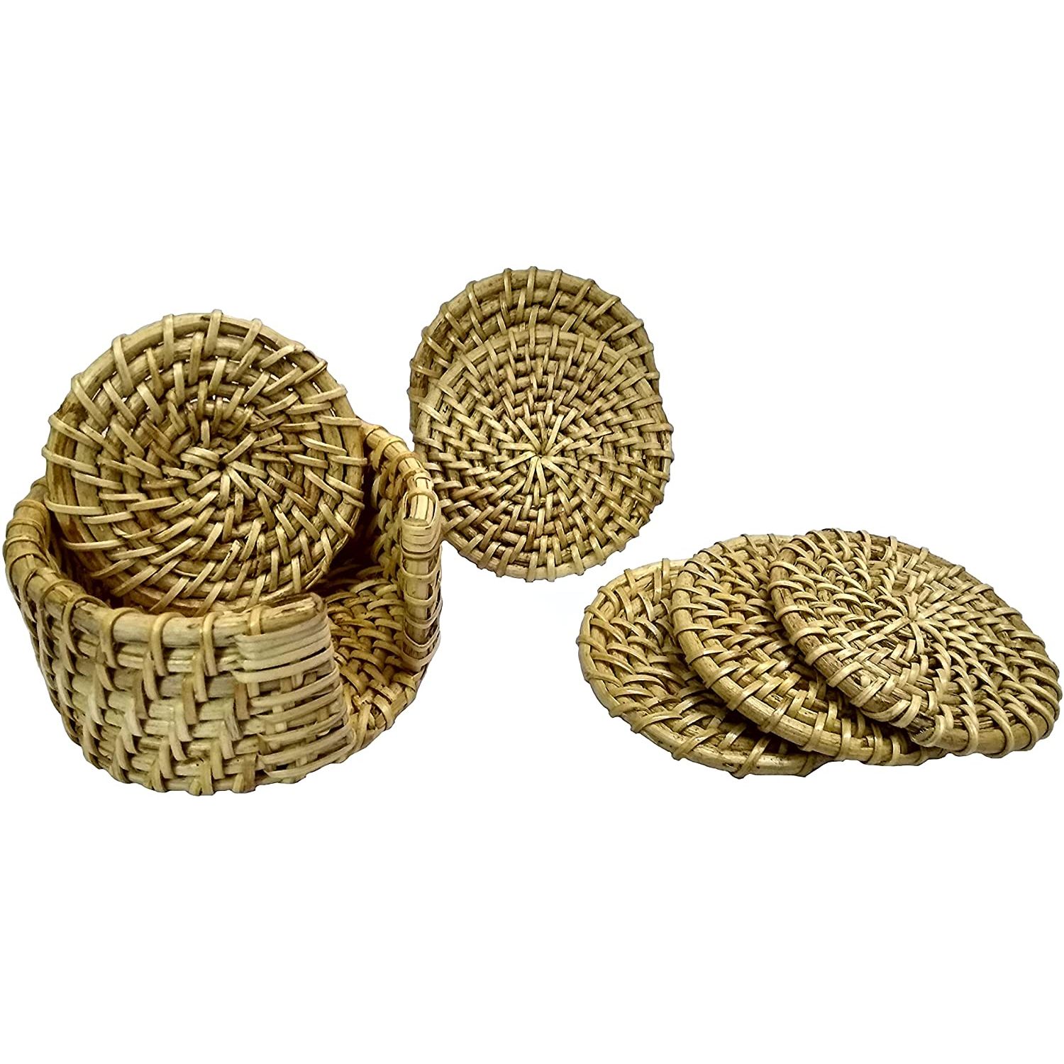 Eşsiz, güzel, hafif, doğal, çevre dostu, çevrenin korunmasına katkıda bulunur. - 6'lı set, bardak altlığı çapı: 4.5 "çok kompakt ve bunları ev, mutfak, açık hava, seyahat, turist için kullanın - Eşleşen bardak altlığı tutuculu yüksek kaliteli dokuma ratan kupa bardak altlıkları - Doğal malzeme ve el dokuması Vietnam becerisi ile el yapımı üretim. Güzel desen dokusu ve son derece işlevsel - Bardak altlıkları, elinizi sıcak bir fincan kahve, çay, sudan korumanıza ve sekmeyi önlemenize yardımcı olur.