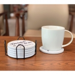 OUsenmarket Seramik Bardak Altlığı(Beyaz Yazılı, 6 Adet)
