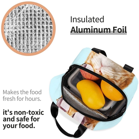 Günlük öğle yemeği veya atıştırma süresi için taşınabilir yalıtımlı öğle yemeği çantasıdır. Yiyeceklerinizi plastik öğle yemeği kutuları veya kağıt öğle yemeği poşetlerinden daha uzun süre taze ve güvenli tutar, öğle yemeği, sandviç, salata için yeterli alan , meyve, atıştırmalıklar, içecekler vb. - Çeşitli sevimli desenli yemek kabı, rahat taşıma sapı ve küçük şeyler için uygun ön kese, kolay açılır fermuarlı çantanızın sorunsuz bir şekilde açılıp kapanmasını sağlar, düzgün dikişler öğle yemeği çantasını sağlam hale getirir. - Üstün çevre dostu polyesterden yapılmıştır.