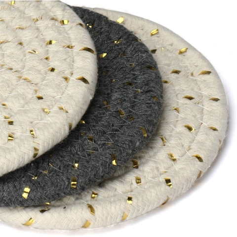 Süper değerli sette 4 adet bardak altlığı bulunur ve güzel kurdelelere sarılır - Saf pamuk ipliği dokuma el yapımı pamuklu bardak altlıkları, her çap: 4,3 inç - Masa renginizi geliştirmek ve masa yüzeyini etkili bir şekilde korumak ve bardaklardan ve sofra takımlarından gelen gürültüyü azaltmak için tasarlanmıştır - Dokuma tarafından çevre dostu renklendirmeye sahip pamuk ipler, el yapımı dikişlerle vurgulanmıştır, her parça benzersizdir - Güzel Noel Ev Dekorasyonu ve Yeni Eve Taşınma Hediyesi - Harika hostes hediyesi, doğum günü hediyesi, Anne#0