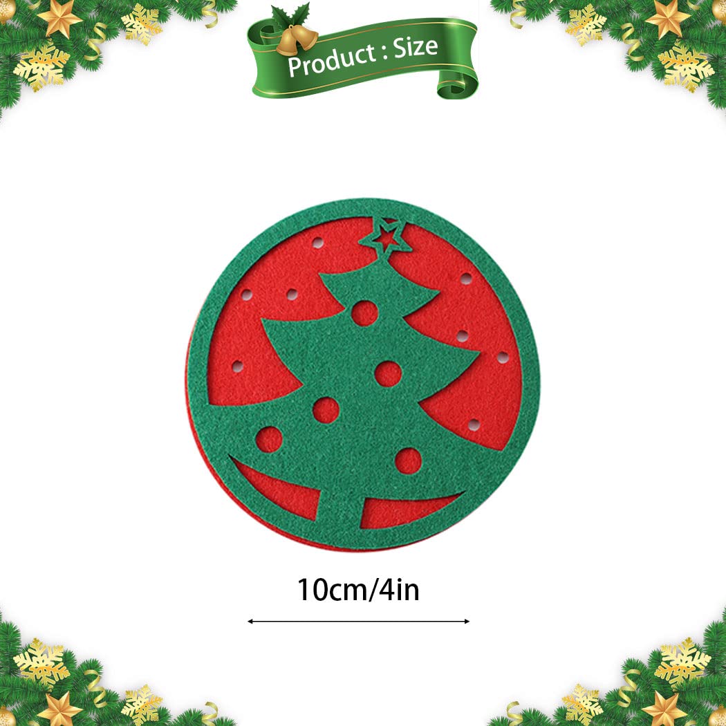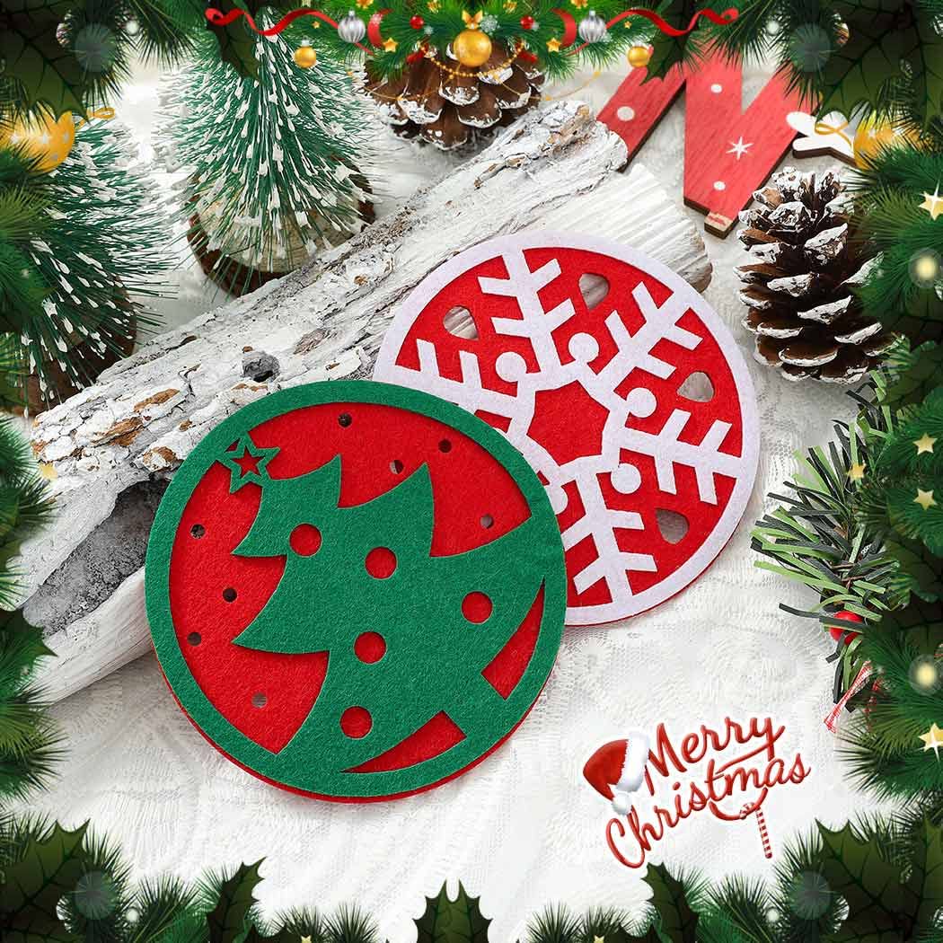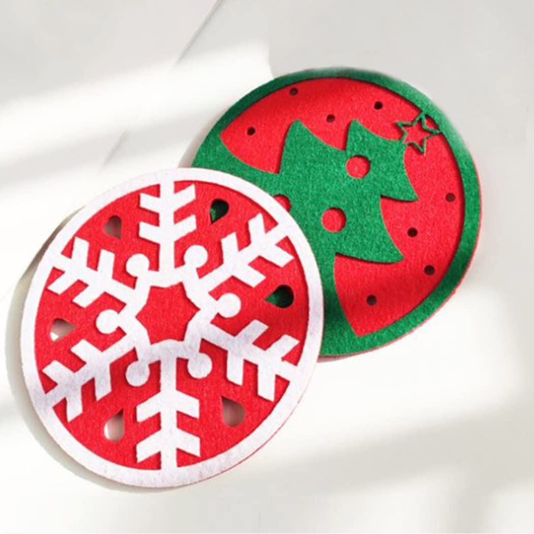 Kar altlıkları keçeden yapılmıştır, parlak renklere sahip kalınlaştırılmış bir malzemedir. - Ağaç kesimli paspaslar 10cm/3.9in çapında, 3mm/0.11in keçeden yapılmıştır.Bir pakette iki adet, biri kar tanesi, biri Noel ağacı. - Yuvarlak bardak altlığı suyu iyi emer, ayrıca ısı yalıtımlı bardak altlığı olabilir, bardak veya şişe koymak masaya kolayca gelmez. - Fincan Mat Pedleri, yeni eve taşınma partisi veya önemli bir tatil hediyesi olarak verilebilecek düşünceli bir hediyedir. - İçecek Altlıkları ev, mutfak gibi birçok yerde kullanılabilir.