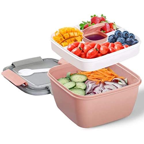 BPA'SIZ GÜVENLİK -Öğle yemeği için salata kabı güvenlidir, BPA'sız %100 Gıda sınıfı Silikon, Güvenli, Toksik olmayan, Salata sosu kabında kimyasal koku yok - EKSTRA BÜYÜK SALATA Kabı-Geniş kapaklı büyük salata kasesi, sığar 6.35 bardağa kadar sağlıklı meyve ve sebze, kadınlar için bölünmüş öğle yemeği kapları, sandviç salata soslarını kolayca saklar. - SIZDIRMAZ VE KOLAY SIKILMAZ Geniş ağızlı şişe, eklenmesi kolay; Sızdırmaz hava değeri akışı kontrol edebilir; Sızdırmazlık için üç katman, Damlama sorununu çözer.