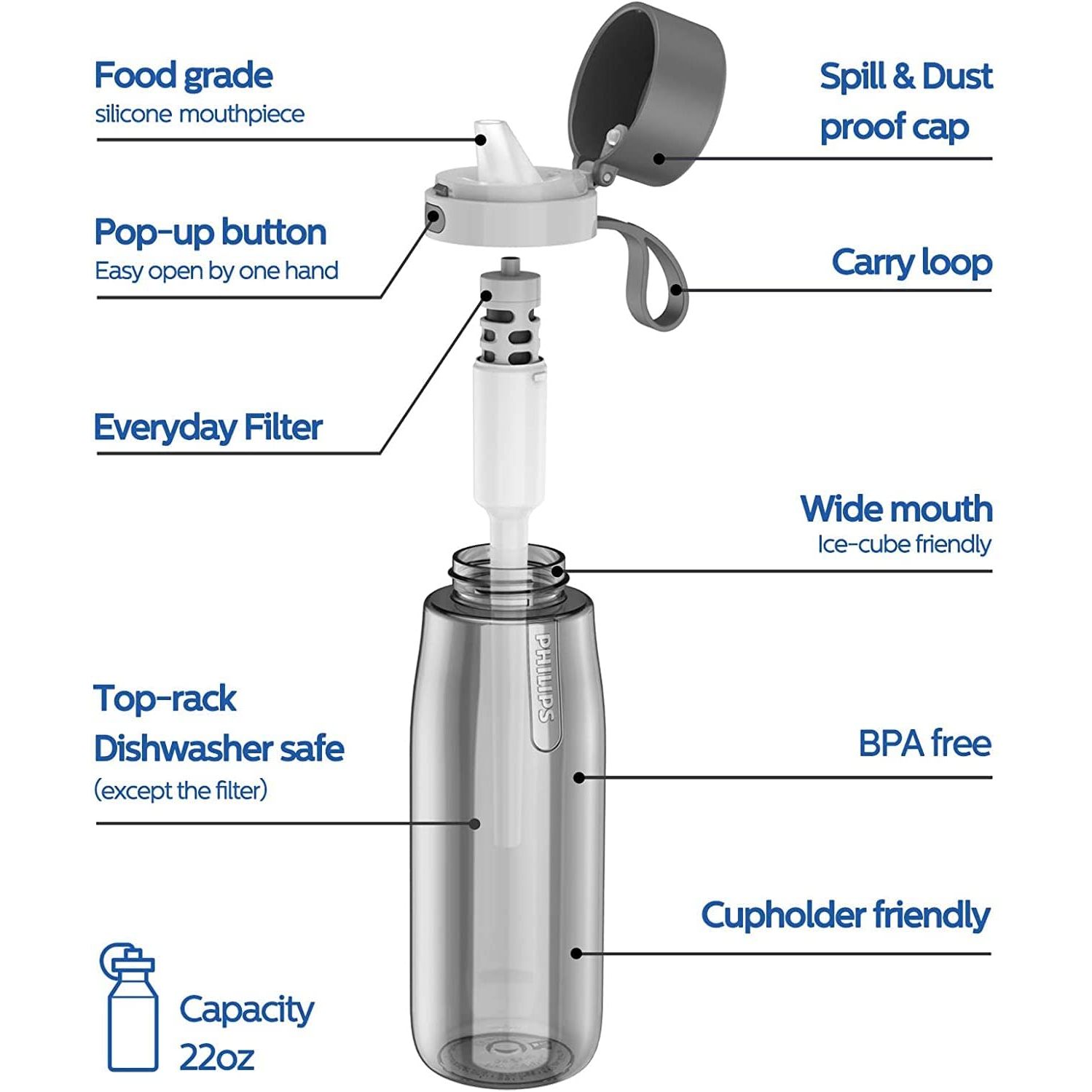 Philips Water GoZero Su Arıtmalı Matara (Gri, 1060ml)