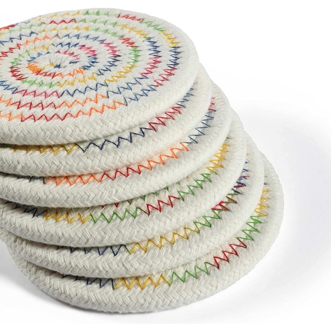 Pamuklu İp El Yapımı Bardak Altlıkları Bu örgülü bardak altlıkları, konu tezgahları, oturma odası sehpalarını, yatak odası yan sehpalarını ve diğer yüzeyleri su hasarından veya ısıdan korumak söz konusu olduğunda ideal stil ve işlevsellik dengesini sunar. - Vintage Ev Dekorasyonu Bal, karışık kahverengi ve klasik siyah dahil olmak üzere 8 benzersiz renk kombinasyonunda sunulan bu dekoratif ip bardak altlıkları oturma odanızın, çalışma odanızın, yemek odanızın veya mutfak alanınızın görünümünü ve hissini geliştirir. - Su Emici ve Isıya Dayanıklı