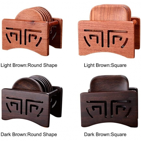 SYCOOVEN Ahşap Bardak Altlığı (Kahverengi, 6 Adet)