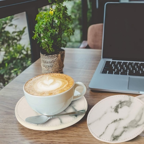 [ Modern Tasarım ] - Gerçekten şık ve zarif görünen benzersiz beyaz mermer tasarımlı klas beyaz PU deri bardak altlığı seti. Modern ve klasik ev stilleri için uygundur. - [İyi Yapılmış] - Bardak altlıkları, ısıya dayanıklı ve su geçirmez, kaliteli çift taraflı PU deri malzemeden yapılmıştır, böylece mobilyalarınızı kahve ve çay ile çizilmeye veya lekelere karşı koruyabilir. - [Mükemmel Boyut] - 4 inç çapında, kahve fincanlarını, çocuk içeceklerini, spor şişelerini, kahve fincanlarını tutmak için mükemmel boyut.