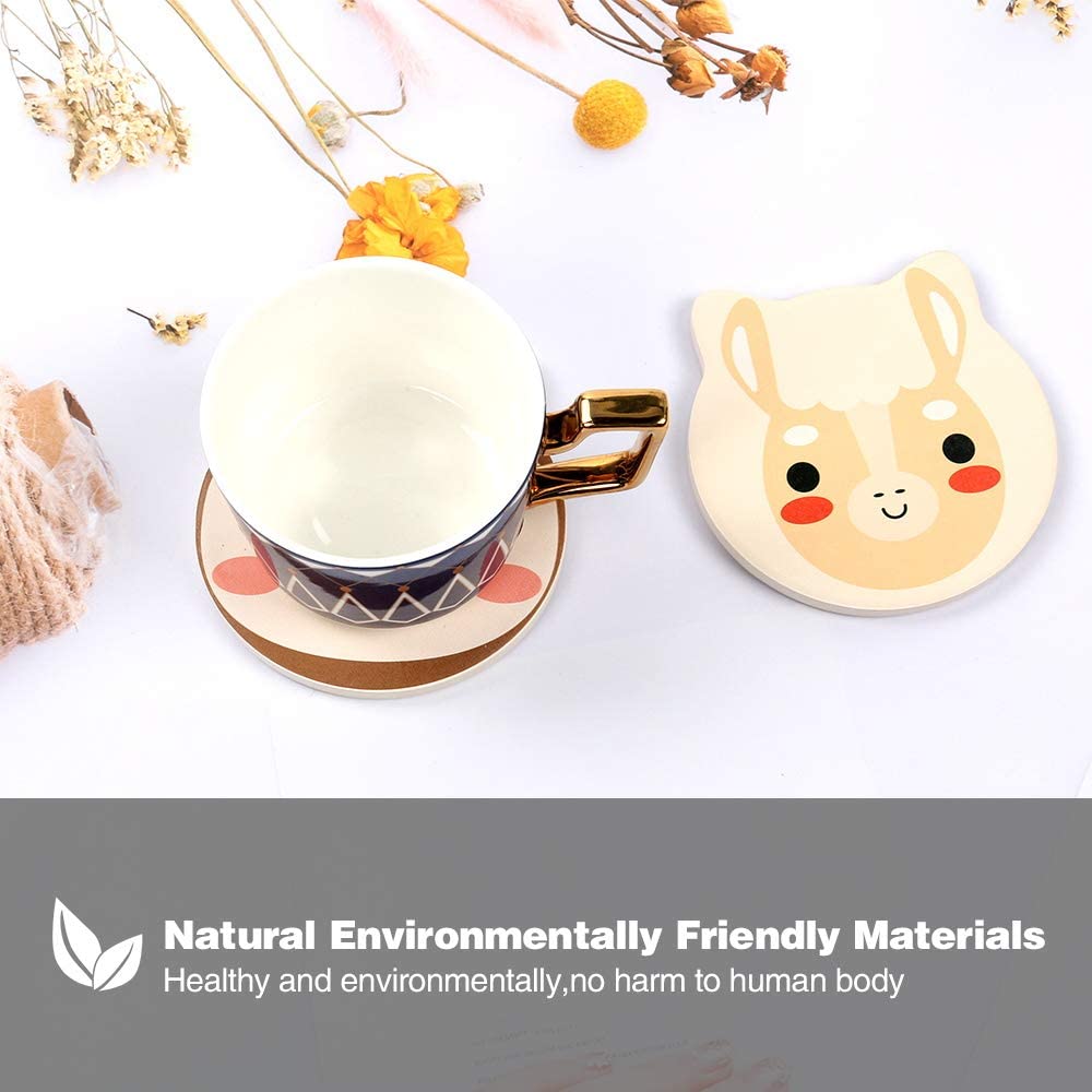 MALZEME Seramik bardak altlığı, nem geçirmez ve nem emici özelliğine olan doğal ve çevre dostu iki atomlu toprak minerallerinden yapılmıştır. - SEVİMLİ HAYVAN TASARIMI Seramik bardak altlığımız alışılmış dairesel görünümü bozar ve yaratıcı hayvan şekilleri ile tasarlanmıştır. Bardak altlığının yüzeyi, kolayca solmaması için özel bir UV baskı işlemi kullanır. Sevimli hayvanlar bardaklarınızdan herhangi biriyle eşleşebilir. - GÜÇLÜ SU EMİCİ  seramikten yapılmış Isıya Dayanıklı Bardak Altlıkları BULUNUR.