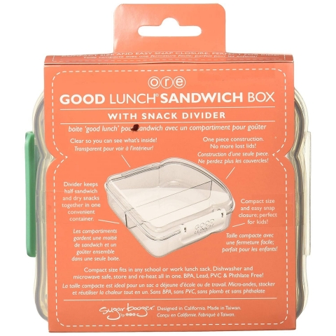 Tüm öğle yemeğinizi kolaylıkla taşımanın en şirin yolu - Yarım sandviç ve kuru atıştırmalıkları bir arada tutmak için bir ayırıcı ve arkada adınızı yazabileceğiniz bir yer bulunur - Bu tek parça, sandviç şekilli kutu ile kayıp kapak sorunları çözülür - Kolay geçmeli kapatma ve kompakt tasarım, her boy küçük çocuk ve öğle yemeği çuvalları için bunu mükemmel bir seçim haline getirir - Kapak açıkken, bu sandviç kutusu mikrodalgaya bile girebilir.