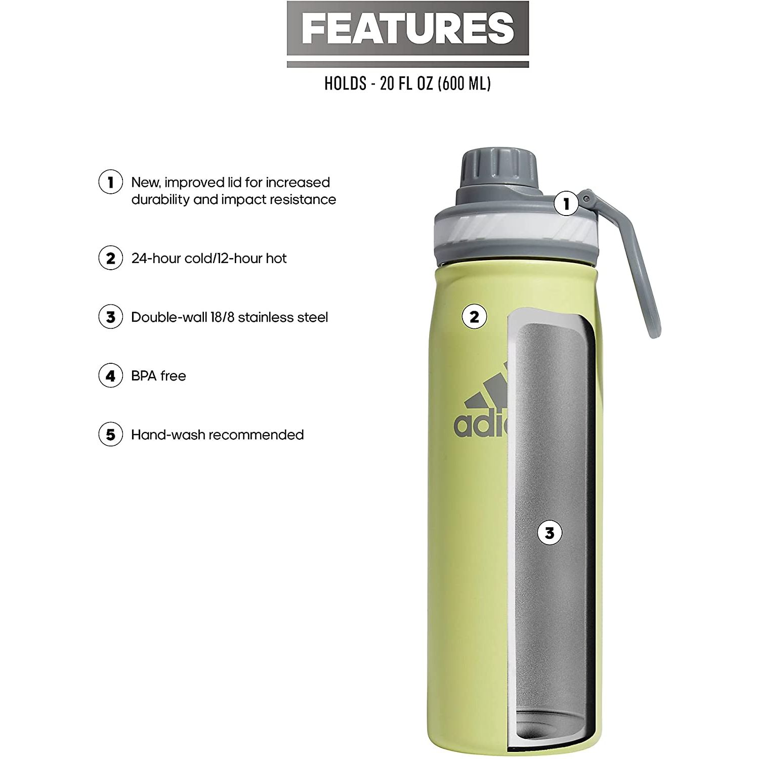 adidas Paslanmaz Çelik Su Şişei (600ml, Sarı)