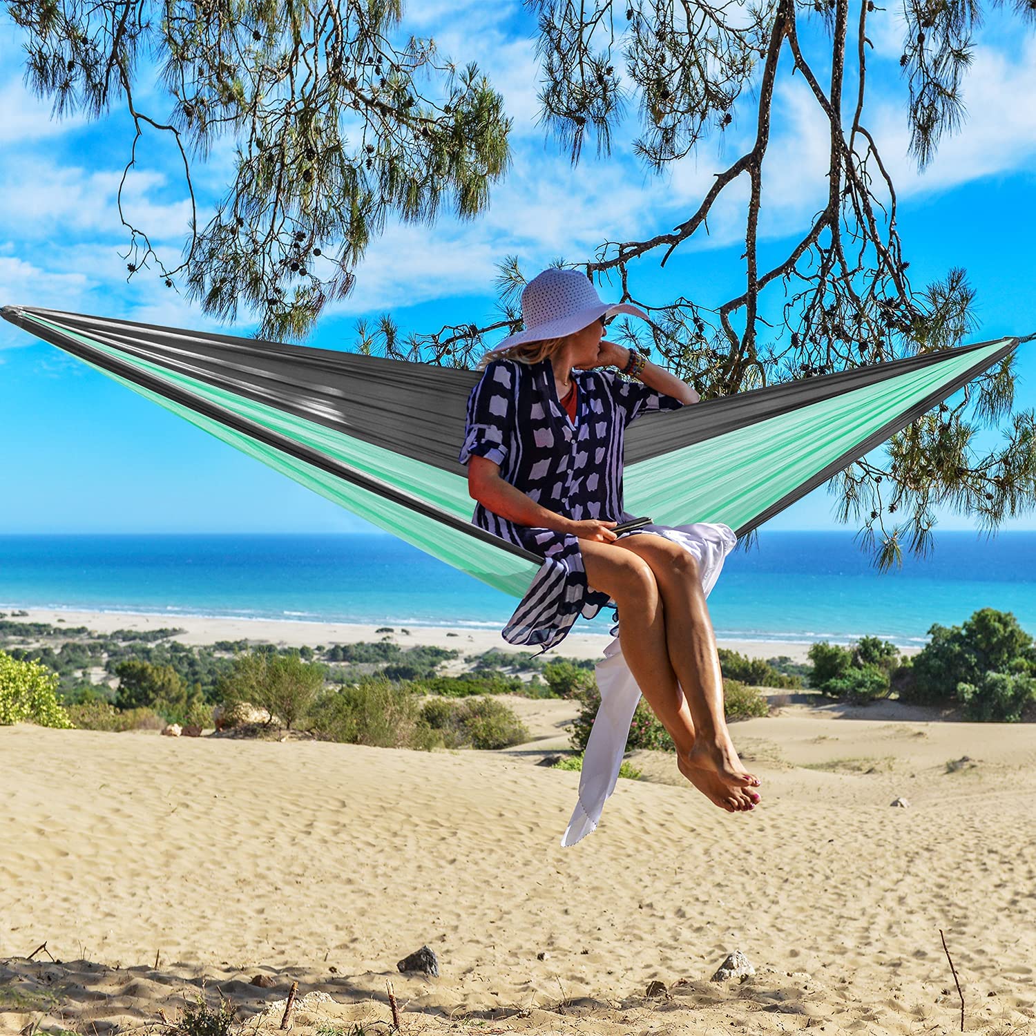 WoneNice Çift Kişilik Nylon Hamak(Gri/Yeşil)