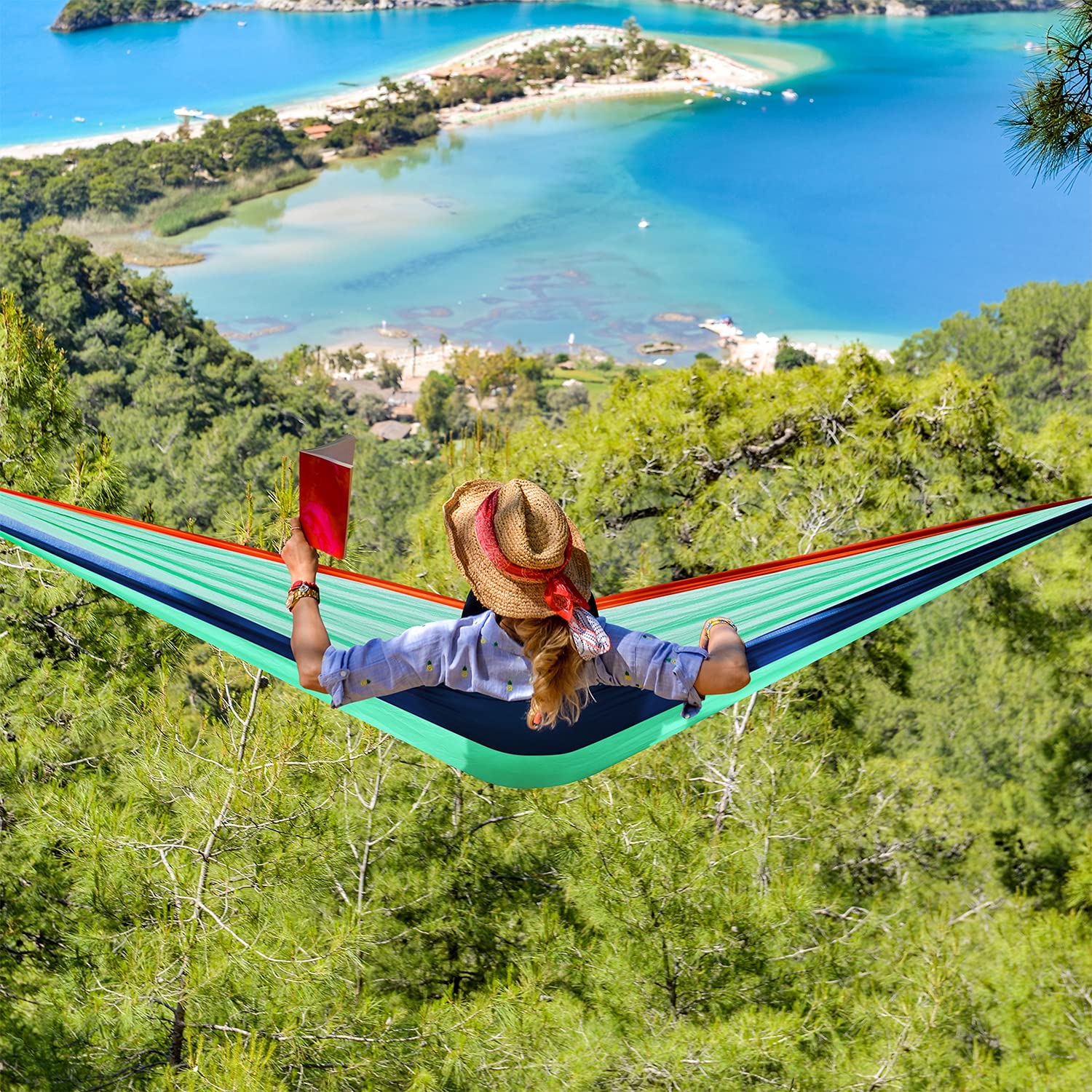 EKSTRA BÜYÜK BOYUT VE DAYANIKLI: Bu 10 ft uzunluğunda 6,5 ft genişliğindeki çift kamp hamak 2 kişiye uyar, yeni 210T naylon paraşüt kumaştan yapılmıştır, ağırlık kapasitesi 500 lbs. - İhtiyacınız Olan Her Şey Dahil: 2 ağır hizmet karabina ve 10 FT uzunluğunda (toplam 20 FT) x 1 İnç Genişliğinde (Ağaç Dostu) 2 ağaç kayışı ve 16 Bağlantı Döngüsü (Toplam 32) içerir, böylece hamakları hızlı bir şekilde asabilirsiniz ve son derece basit. - SÜPER GÜÇLÜ: Ağaç kayışları %100 esnemez polyester boru şeklinde dokumadan yapılmıştır.
