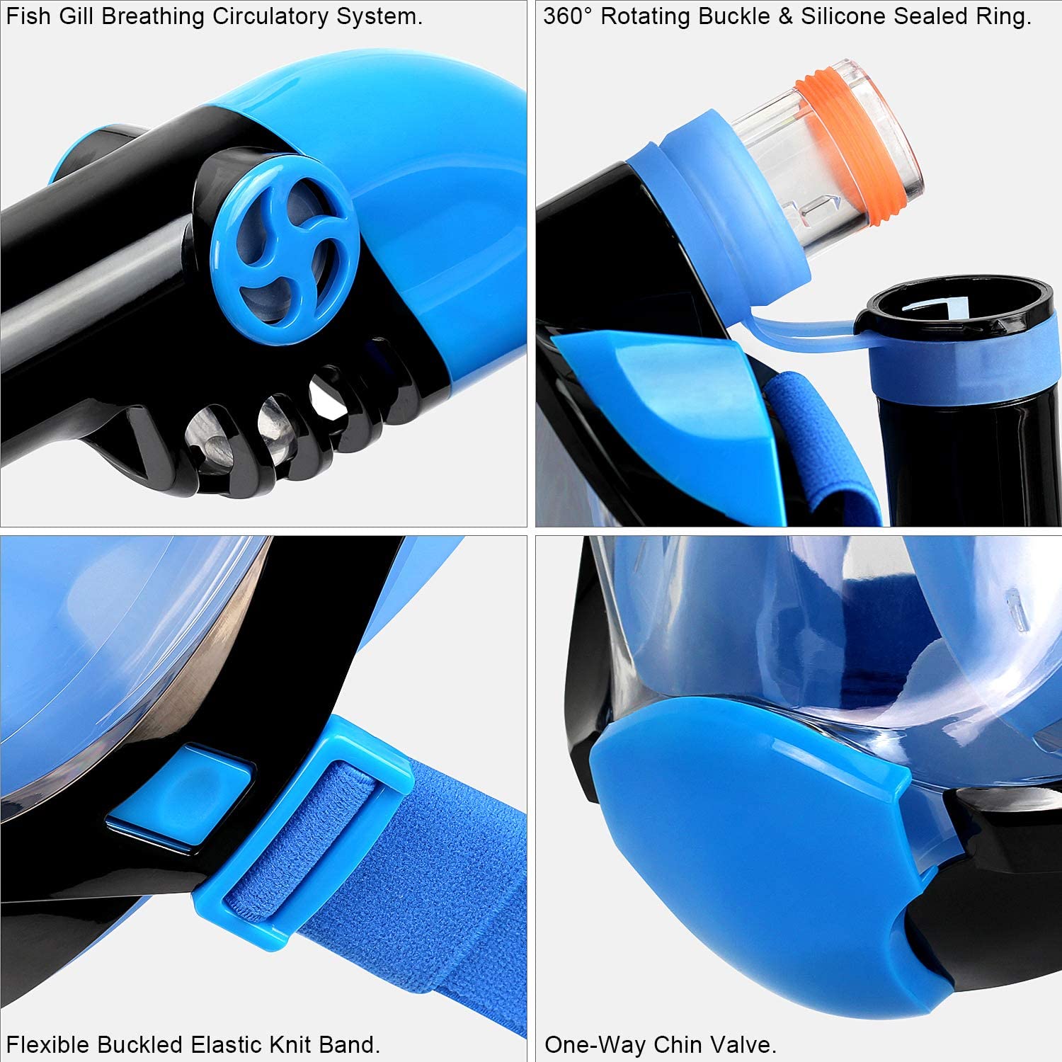 OUSPT Tüm Yüz Maske Şnorkel Set (S, Mavi/Siyah)