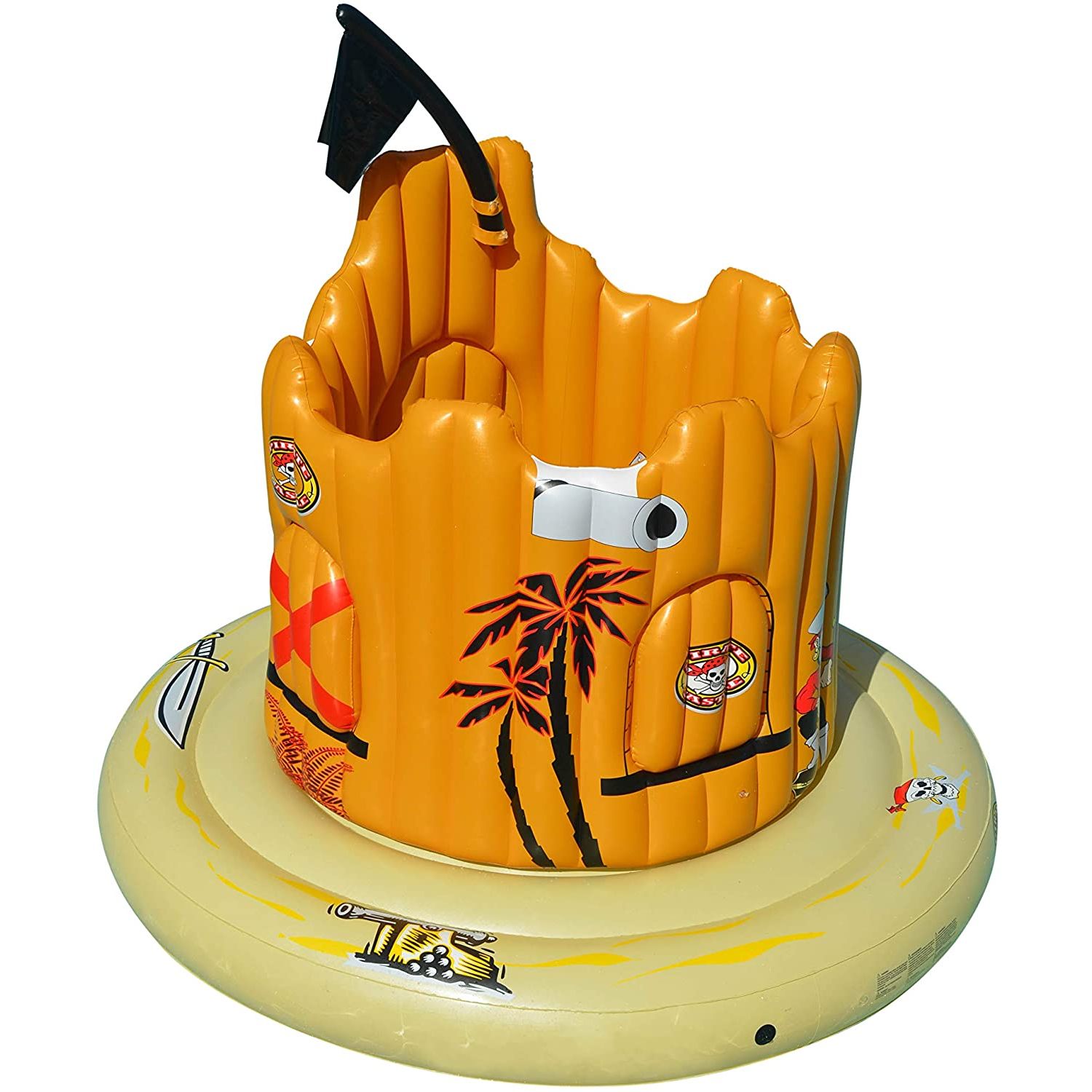 Heyecan verici korsan temalı havuz şamandırası - Tam 82" x 62" şişirilebilir ada - İçinden yüzerek geçilen merkez deliği ve ıslak ve vahşi hendek kaydırağı ile birlikte gelir - Uzun süre dayanacak şekilde yapılmış dayanıklı vinil yapı - Şişirmesi ve söndürmesi kolaydır.