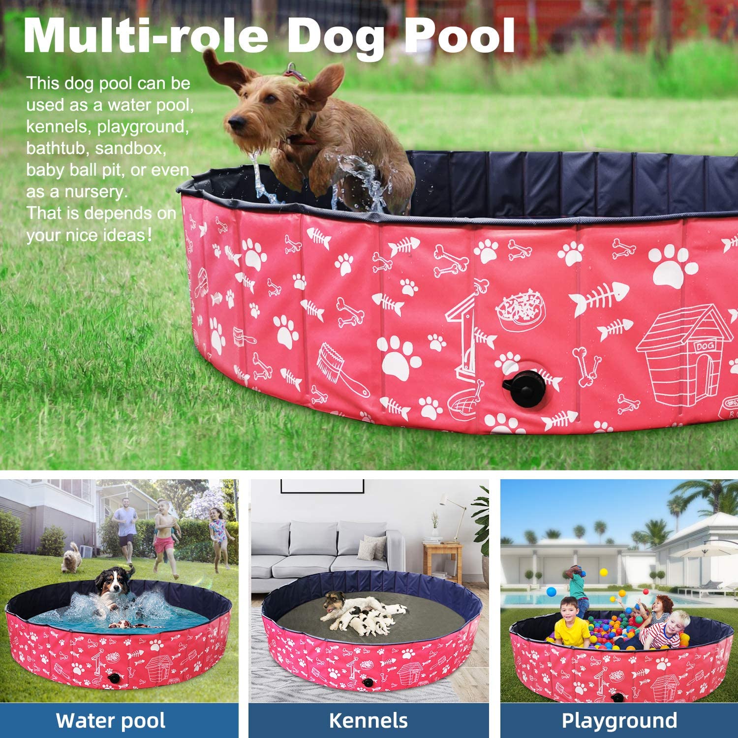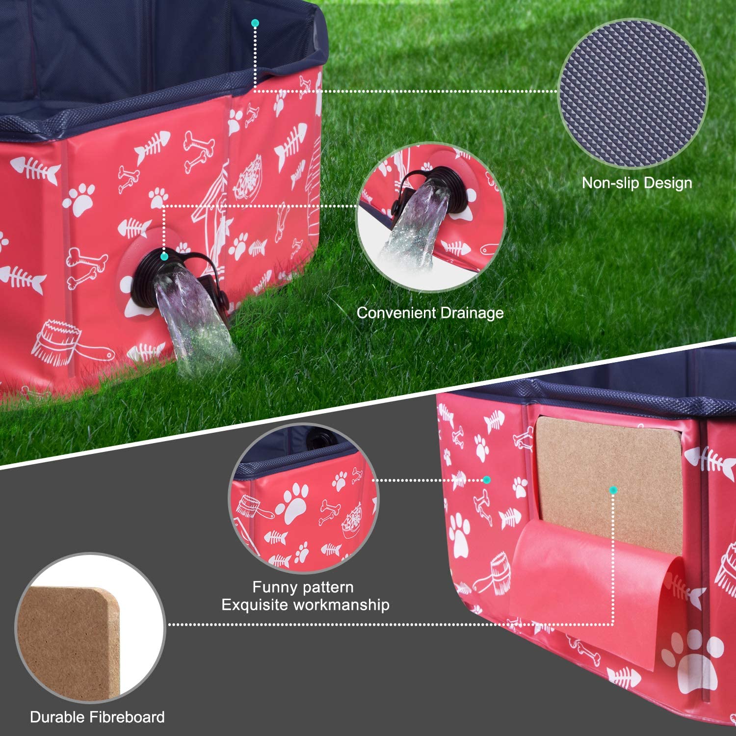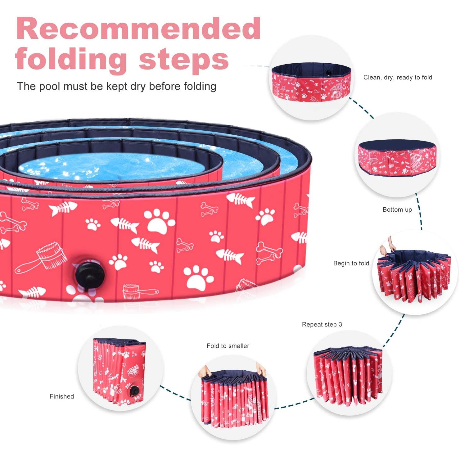 Köpek Havuzu Sert Plastik: Dayanıklı evcil hayvan havuzu, çevre dostu PVC'den ve su olmadan bile şeklini koruyan daha kalın ve yüksek yoğunluklu lif levha malzemelerden yapılmıştır. Havuzun tabanı kaymaz olup, köşeleri iyi kapatılmış olup, kullanım için yeterince sağlamdır. Tüm müşteriler için güvenilir bir havuzdur. - Hızlı Kurulum: Bu köpek havuzunun hava pompasına ihtiyacı yoktur, sadece düz bir yer bulun, çocuk havuzunu saniyeler içinde açın ve ardından suyla doldurun.