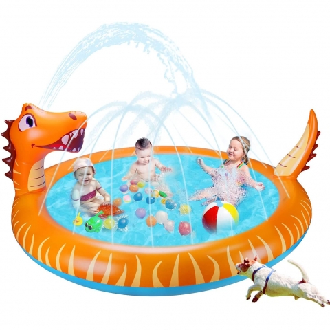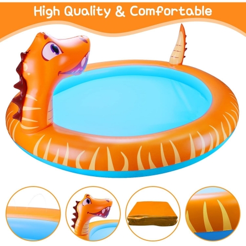 Çocuk Fıskiye Havuzu - Çocuklar için açık havada dinozor su sprinkler oyuncakları, bebeklerin veya küçük çocukların su oynaması ve sprey ve sıçramada serinlemesi için mükemmeldir. Dinozor su oyuncakları çocuk havuzu, aileye serin ve eğlenceli bir yaz geçirmenizi sağlar. 1 2 3 4 5 6 7 8+ yaş bebekler, küçük çocuklar ve çocuklar için Şişme Su Oyuncakları. - Sevimli ve Eşsiz Dinozor Tasarımı - Çocuk havuzları, dinozor görünümüne sahiptir, böylece çocuklar kesinlikle bu şişme çocuk havuzunu seveceklerdir. Çocuklar coo'nun tadını çıkarmak için oynuyor.