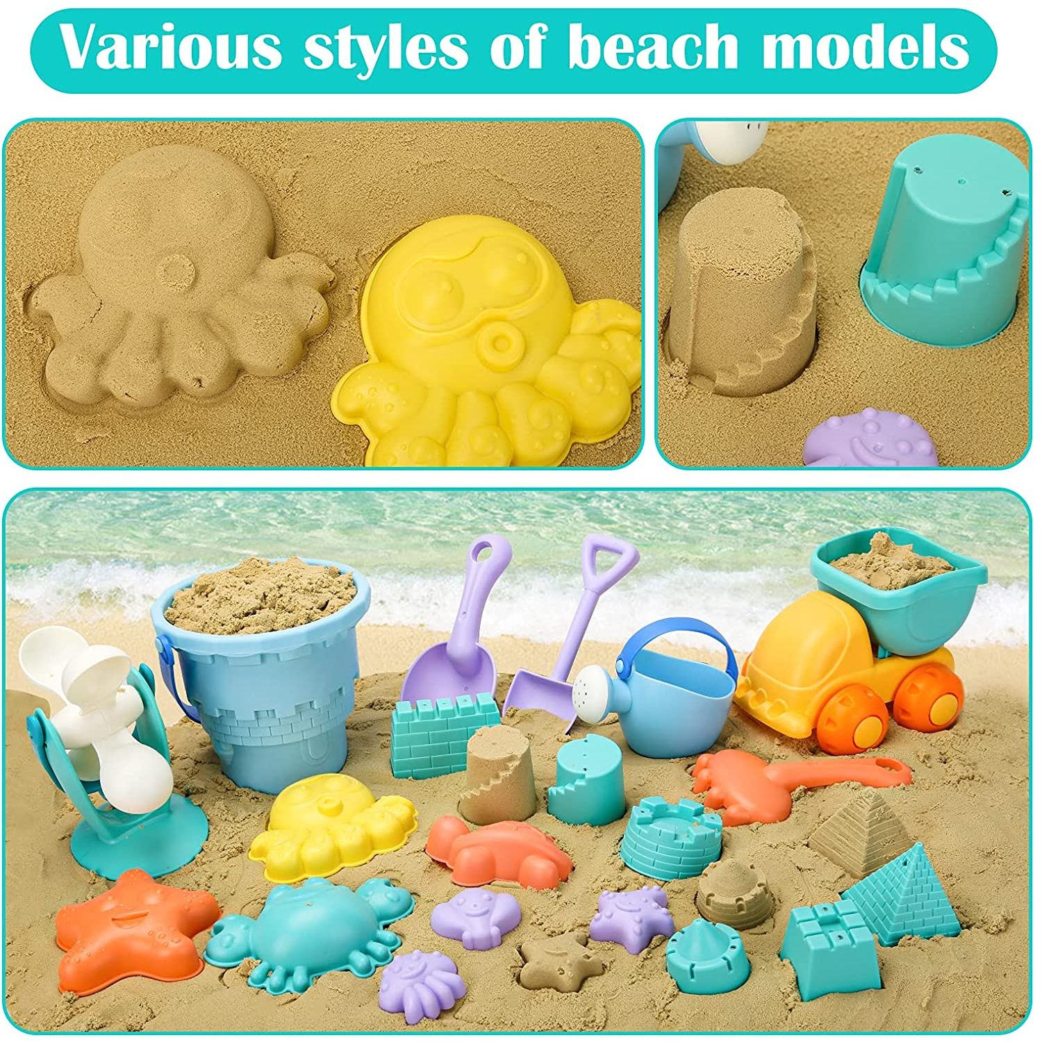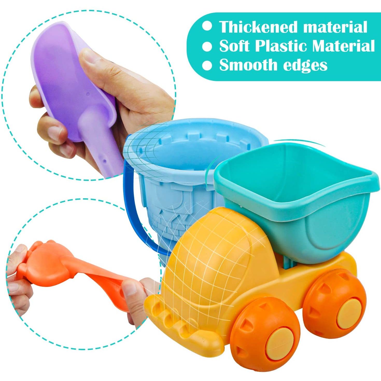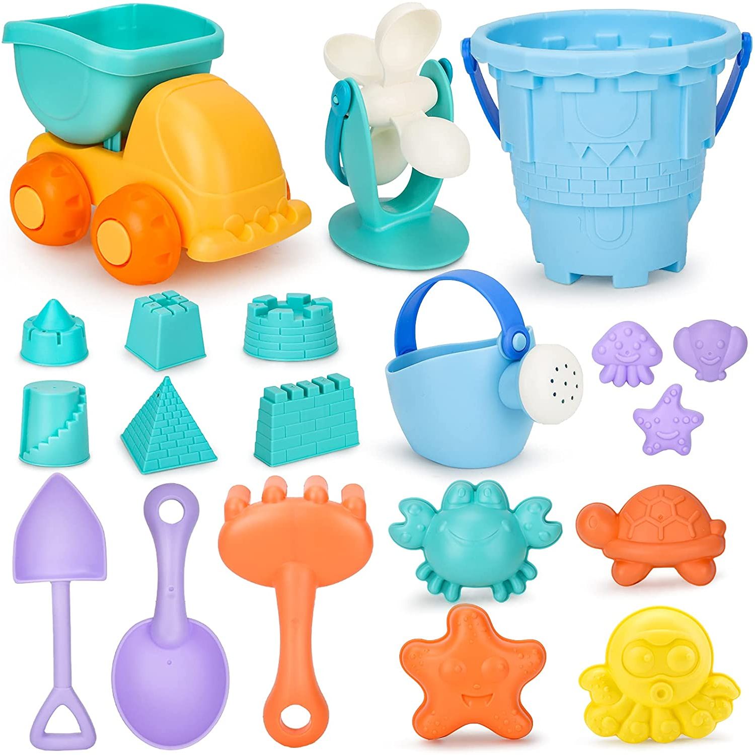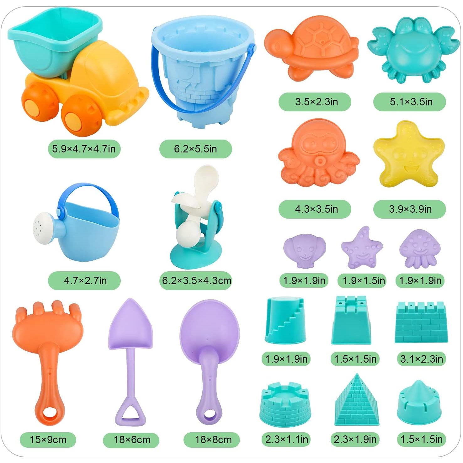 [Çok Renkli Plaj Oyuncakları] 20 adet renkli kum oyuncak seti 1 damperli kamyon, 1 kova, 1 sulama kabı, 1 su çarkı, 13 kum kalıbı, 2 kürek ve 1 tırmık içerir. - [Yüksek Kaliteli Malzeme] Çevre dostu plastik malzemelerden, pürüzsüz kenarlardan ve dayanıklıdır. - [Plaj Oyuncak Çantası] Evi temiz tutmak ve seyahat etmeyi kolaylaştırmak için tüm sanal alanları kolayca saklamak için yeniden kullanılabilir örgü çanta. - [Fancy Play] Sandbox oyuncak seti, plaj oyunları için olduğu kadar yüzme havuzları, bahçeler ve diğer iç mekan dış mekan aktiviteleri için de harikadır.
