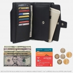 Deri astar - Fermuar kapatma - ÜSTÜN İŞÇİLİK - Bu Premium Hakiki Deri Cüzdan, pürüzsüz bir yüzeye ve yumuşak siyah deriye sahiptir. İçeriği güvende tutmak için iki çıtçıtlı modüler tasarım ve siz daha fazla kart ekledikçe genişler. - BÜYÜK KAPASİTE - Kredi kartlarını, banka kartlarını, banka kartlarını, kimlik kartlarını vb. tutmak için 20 kart yuvası, katlanmış nakit, bilet, makbuz, kupon vb. için 2 büyük fatura / banknot bölmesi, büyük bir cep telefonu cebi ve bir bozuk paraları tutmak için genişletilebilir fermuarlı bozuk para cebi bulunur.
