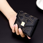 Deri astar - Çıtçıtlı kapatma - 4 kredi kartı yuvası, Bir kimlik penceresi ve Bir büyük nakit cebi ile İnanılmaz Kapasite Cüzdanı Bol Nakit Tutabilir. - %100 Hakiki Deriİlk katman dana derisinden yapılmış Perçin çivili tasarım cüzdan, Yumuşak, Pürüzsüz ve çok daha dayanıklı, lüks görünümlü, uzun ömürlü olmasını sağlar. -  - Kadınlar / Kızlar için Mükemmel Hediye Üstün yumuşak dana derisi ile metal altın perçin çivili stil,