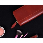 Deri astar - Fermuar kapatma - Üstün Kaliteli Deri, ağır hizmet tipi kontrast astar ve dayanıklılık ve çekicilik için hassas dikişli yetenekli ustalar tarafından el yapımı. Tonlu dikiş, debriyajın dinamiğine katkıda bulunur. - Debriyaj, değerli eşyalarınızı güvenli bir şekilde saklamak için ortadakinin tamamı fermuarlı olduğu 3 bölmeye sahiptir. Her iki taraftaki diğer 2 bölmede, 4 kart yuvası olan bir düzenleyici yuvası ve para birimini veya diğer temel eşyaları saklamak için açık bir kol bulunur. -