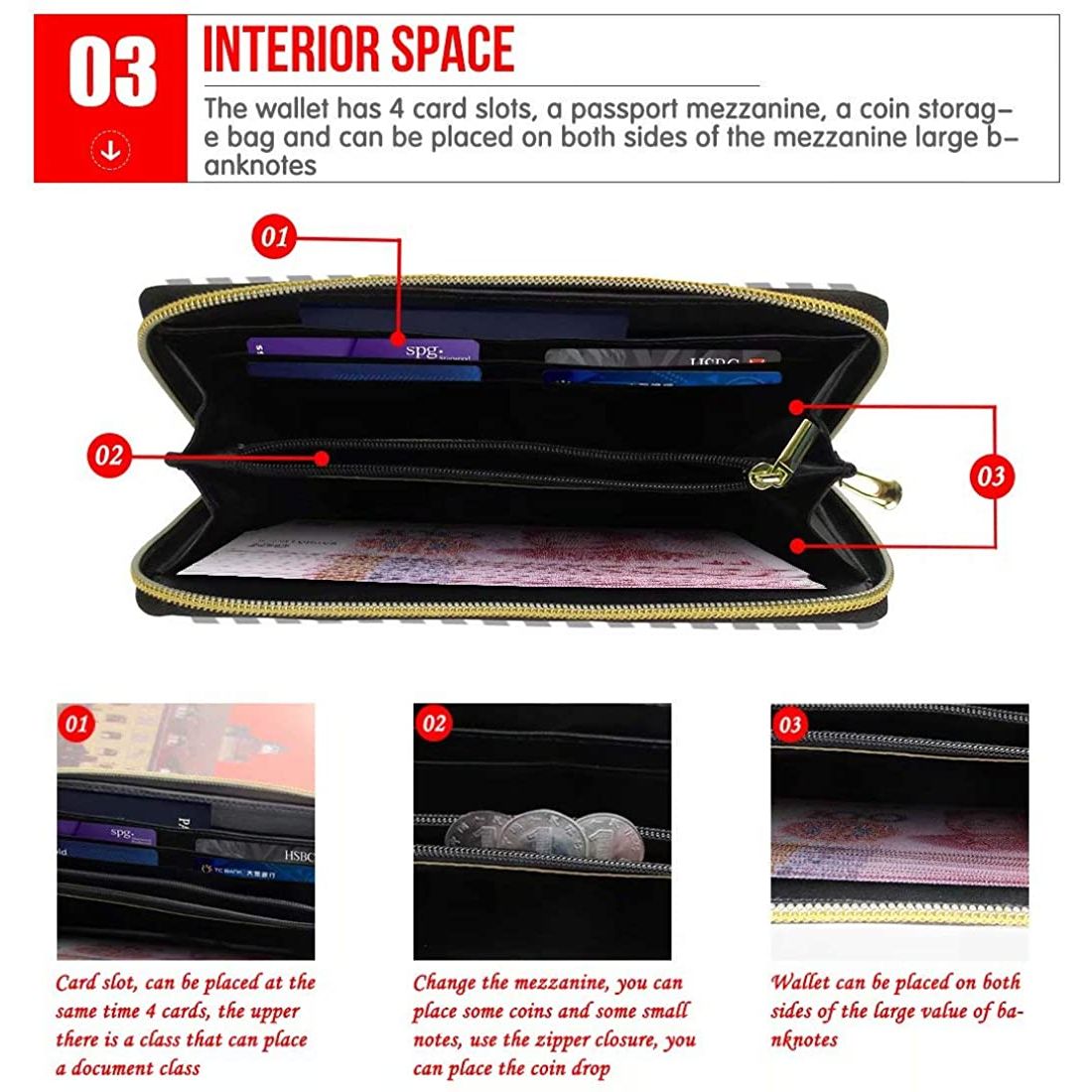 Suni Deri astar - Fermuar kapatma - MALZEME - Uzun cüzdan PU deriden yapılmıştır, rahat dokunuşlu, yumuşak ve sağlam, hafif (140g) ve su geçirmezdir. Dayanıklı metal fermuar donanımı lüks ve sorunsuz çalışıyor. -  . Açık düzen ve tasarım, eşyalarınızı iyi organize etmeniz ve kullanımı kolay tutmanız için yapılmıştır. - BENZERSİZ BASKI - Çok çeşitli moda benzersiz renk ve desenler mevcuttur - hayvan, evcil hayvan, mandalina, çiçekler, bağbozumu, Noel, Cadılar Bayramı, sui