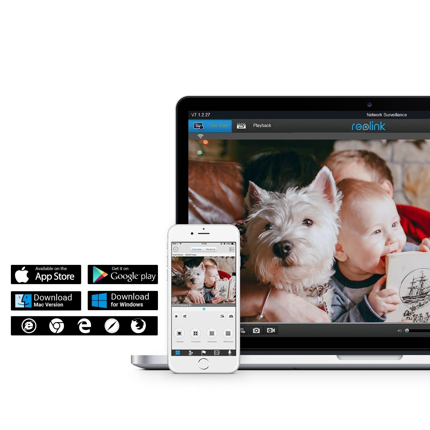7/24 HD video kayıt ve saklama özelliği sağlar (16 kameraya kadar ve Reolink PoE kameralarını destekler).