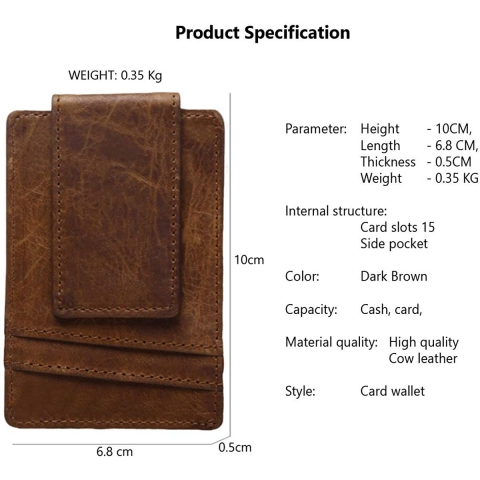 Deri astar - Tokalı kapatma - Saf deri - ilk dana derisinden yapılmıştır, esnek dana derisinden, yumuşak ve dokunması rahat, ultra hafif 35g. Tüm dikişler güçlendirilmiş, sağlam ve dayanıklı, dayanıklı bir cüzdandır. Ne kadar çok kullanırsanız, o kadar güzel olur. Uzun süre bu yağlı cildin harika dokunuşunun tadını çıkaracaksınız. - Basit ve pratik tasarım: 6 kart yuvası, 4 ön kart yuvası, 2 arka kart yuvası, 1 yan cep, bozuk para, bozuk para kartları vb.