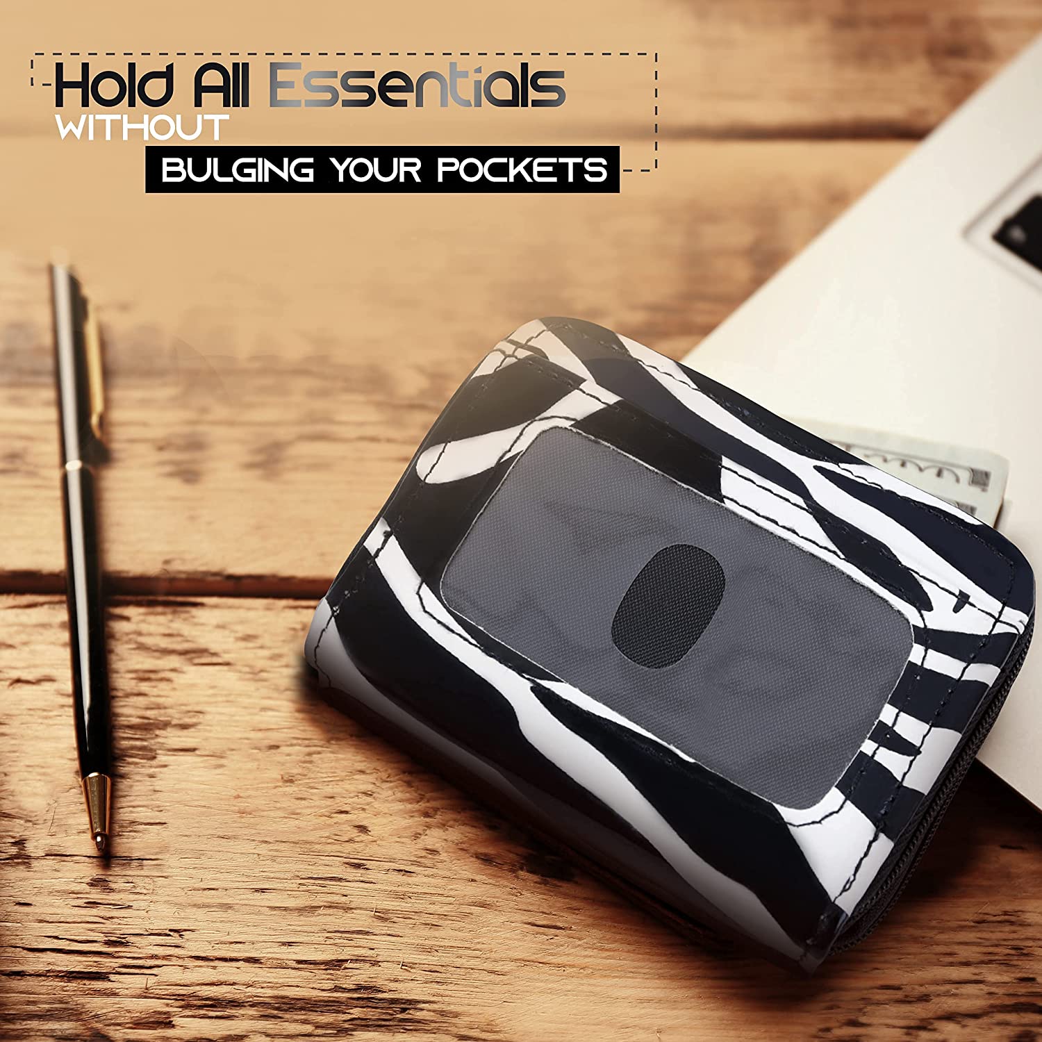 Şık Zebra Baskı - Kimlik Tutucu - Yerden Tasarruflu Akordeon Tasarım - Kredi Kartı Yuvaları - Fermuar Kapatma