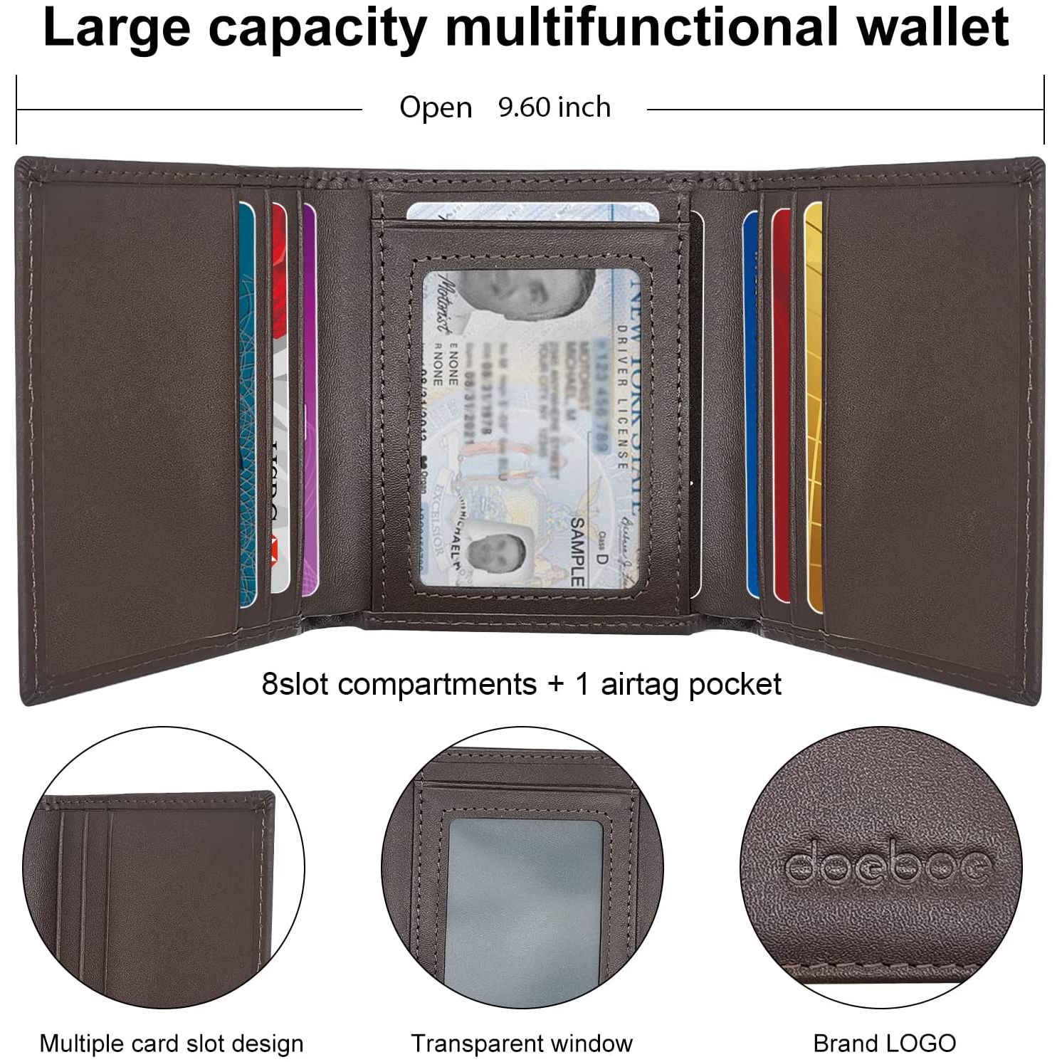 Klasik Üç Katlı Kapanış Tasarımı - %100 Hakiki Sığır Derisi - BÜYÜK HEDİYE FİKİRİ - Onu tüm gün memnun edin. Sevgililer Günü, Noel, Doğum Günü, Yıldönümü, Şükran Günü, Babalar Günü veya herhangi bir önemli tatil için yaratıcı ve pratik bir hediye olarak doeboe üç katlı hava etiketi cüzdanıyla ona büyük bir sürpriz yapın. Cüzdanını kaybetme konusunda asla endişelenme! (Enfes hediye kutusuyla birlikte) - ÖZEL AIRTAG YUVASI - AirTag için tam olarak tasarlanmıştır. Rf'yi önlemek için AirTag'i güvenli bir şekilde sabitlemek için yerleşik bir hava etiketi yuvası vardır.