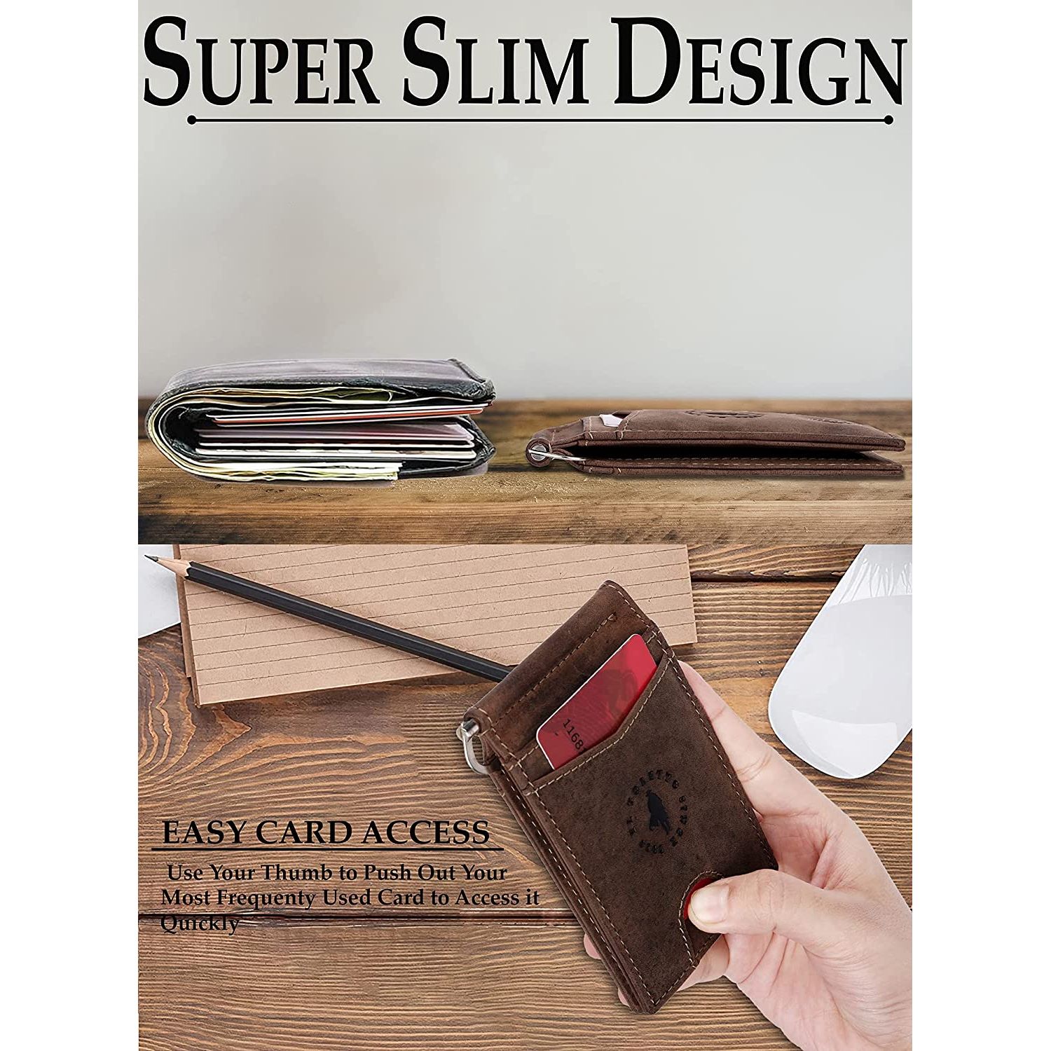 Güvenlik, Gizlilik ve Güvenlik - Cüzdanlarımız, 13.56 MHz veya daha yüksek RFID sinyallerini engellemek ve RFID çiplerinde depolanan değerli bilgileri yetkisiz taramalardan korumak için özel olarak tasarlanmış benzersiz bir metal bileşik olan gelişmiş RFID SECURE Teknolojisi ile donatılmıştır - Slim Down Your Pocket- Made Finest Grain deri ve Top Grain Leather ile. Tasarlanmış Hızlı Erişim Kimlik Pencereleri, 6-8 karta En İyi Uyar artı toplu olmayan ABD faturaları ve hacmi azaltmak için minimal bir Çekme-tırnak tasarımı.