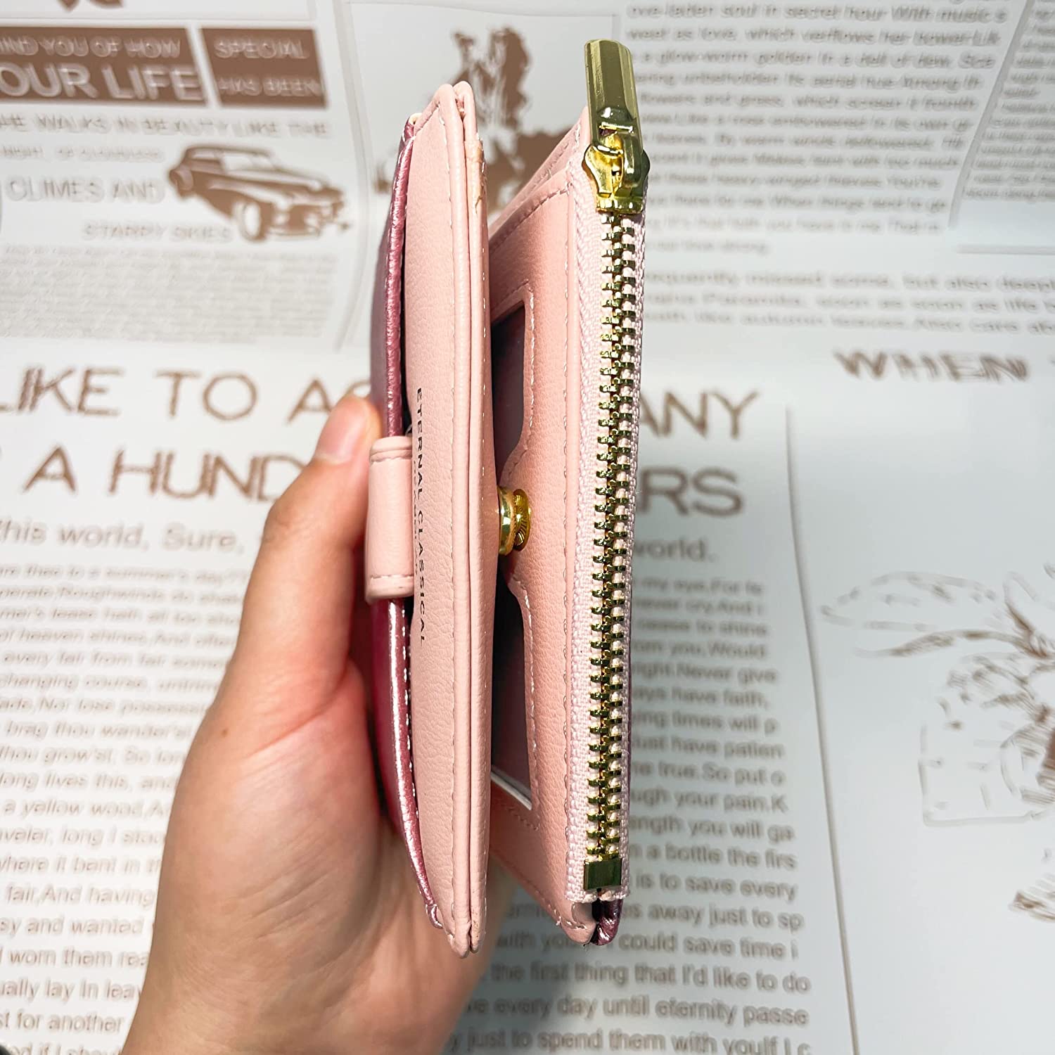 Malzeme: pu + polyester, rahat hissedin. - - Zarif Payet Tasarım: Mutlu bir stil için göz kamaştırıcı payet deri tasarım. - Çoklu Kart Yuvası Tasarımı: 6 kart tutun, ehliyet, az miktarda bozuk para ve banknot değişir. - Hafif: Sırt çantasında taşıması kolaydır ve küçük bir el çantasıyla uyumludur.