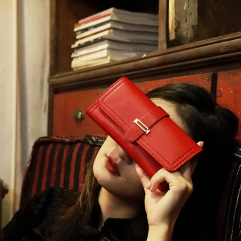 RILONG Kadın Deri Cüzdan (Kırmızı)