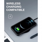 Qi kablosuz şarj cihazlarıyla ve MagSafe ile çalışır ancak MagSafe şarj cihazına veya araç tutucular veya cüzdanlar gibi MagSafe aksesuarlarına mıknatıslanmaz.