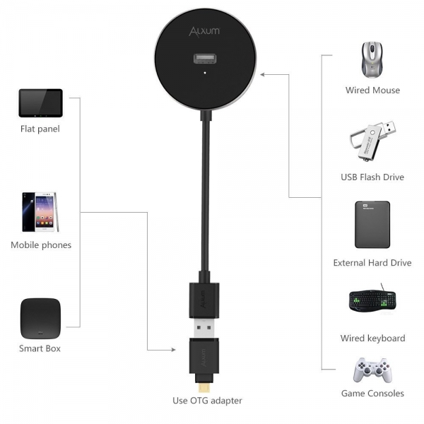 Alxum USB 2.0 Data Hub Adaptör (Siyah)