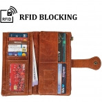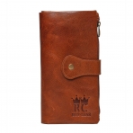 Deri astar - Düğme kapatma - Malzeme: Vintage metalik çıtçıt düğmeli ince taneli deri ile tasarlanmış ve el yapımı. - Donanım: Zip, Zip Slider ve Snap butonları saf pirinçten imal edilmiştir. - Fonksiyonel Tasarım: Bu cüzdanın üç ana bölümü vardır. İlki, kimlik kartı için bir pencere ve nakit para için büyük bir bölme ile kartları istiflemek için altı cep içeriyordu. Orta segment altı kart bölmesi, bir kimlik kartı penceresi, iki ana nakit tutma büyük cep  bulunur.