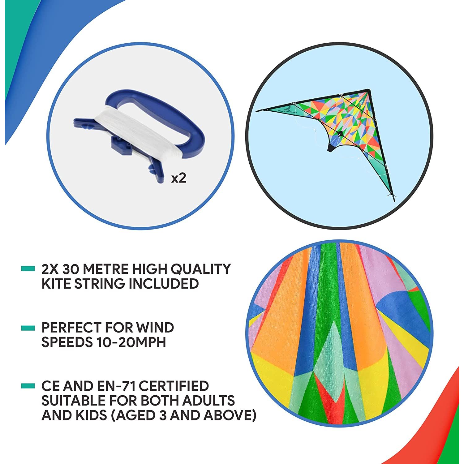 YENİ Hafif ve dayanıklı canlı renkli dublör uçurtma - Sağlanan kullanışlı taşıma çantasına kurulumu ve katlanması kolaydır - 2x 30m yüksek mukavemetli ipler ve kulplar sağlanır - Bir parkta, plajda veya diğer herhangi bir açık alanda kullanım için mükemmeldir. İdeal rüzgar koşulları 5-20mph, ancak deneyimli kullanıcılar tarafından daha yüksek rüzgarlarda kullanılabilir - Bu göz alıcı dublör uçurtma ile önceden herhangi bir deneyiminiz olmasa bile dakikalar içinde yüksek hızlı hileler ve manevralarda ustalaşacaksınız.