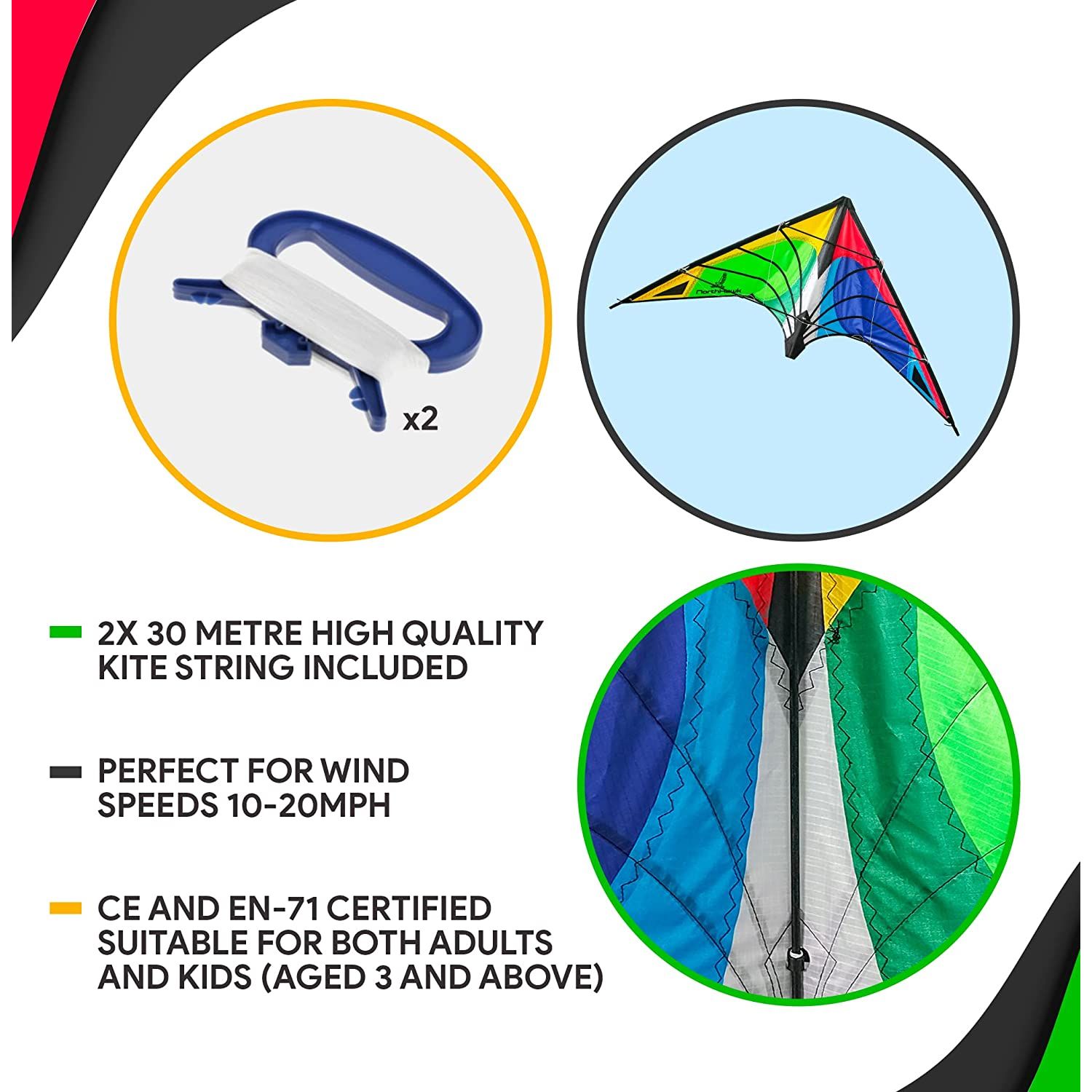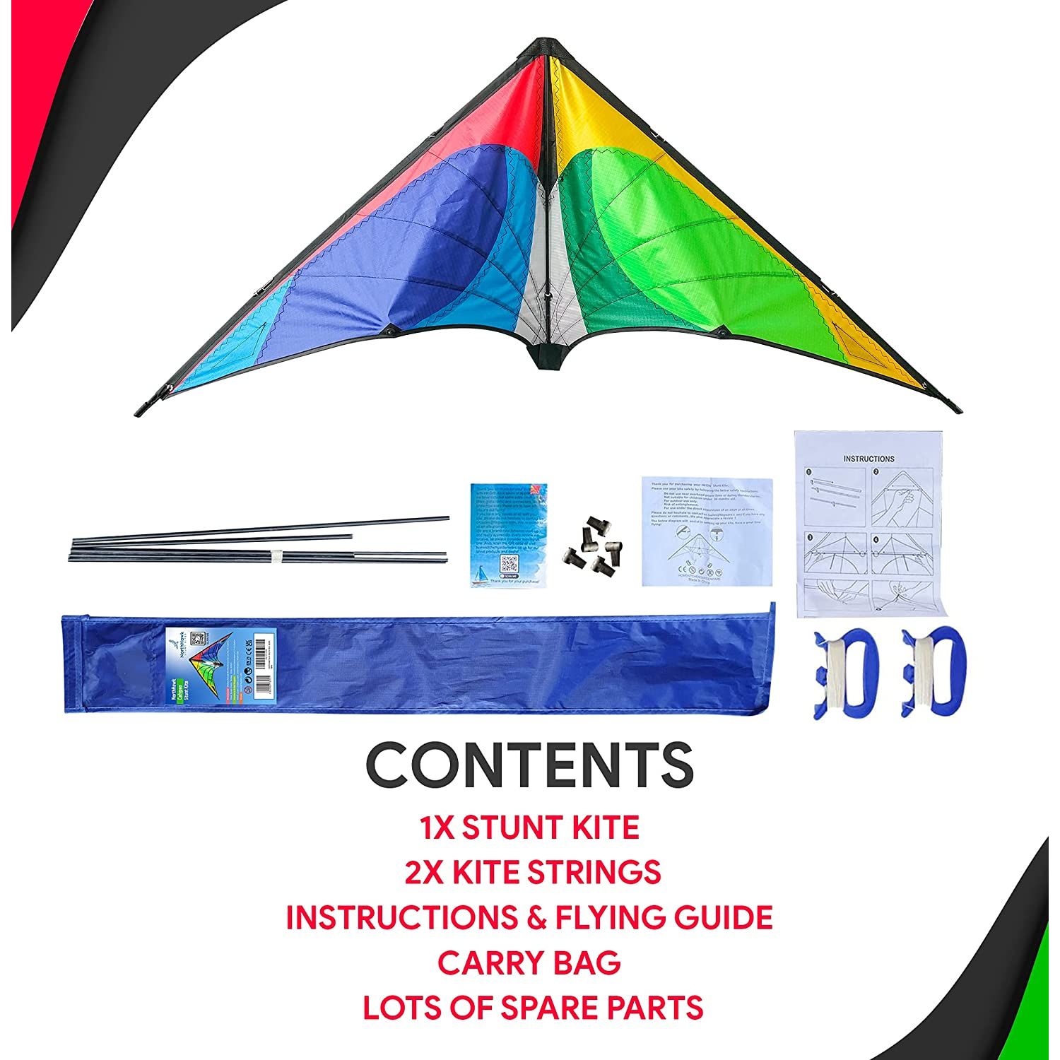 YENİ Hafif ve dayanıklı canlı renkli dublör uçurtma - Sağlanan kullanışlı taşıma çantasına kurulumu ve katlanması kolaydır - Park, plaj veya diğer herhangi bir açık alanda kullanım için mükemmeldir. İdeal rüzgar koşulları 5-20mph, ancak deneyimli kullanıcılar tarafından daha yüksek rüzgarlarda kullanılabilir - Bu göz alıcı dublör uçurtma ile daha önce herhangi bir deneyime sahip olmadan bile dakikalar içinde yüksek hızlı hileler ve manevralarda ustalaşacaksınız.
