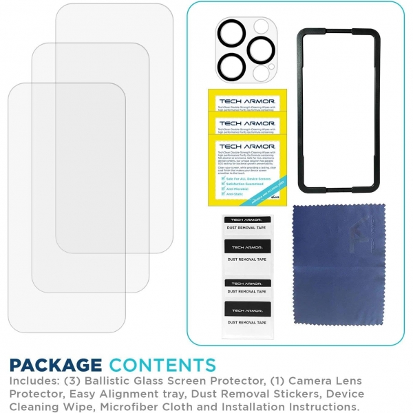 Tech Armor Apple iPhone 14 Pro Max Cam Ekran Koruyucu(3 adet) ürünü iPhone 14 Pro Max ile tam uyumludur.