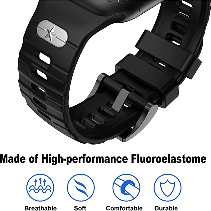 Aktif spor yaşam tarzı için diğer silikon bantlardan daha iyi aşınma önleyici, toz geçirmez ve cilt dostu özelliklere sahip, dayanıklı ve güçlü, özelleştirilmiş yüksek performanslı floroelastomerden yapılmıştır.