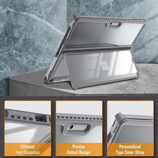 Birinci sınıf yumuşak TPU ve güçlü polikarbonat, günlük kullanıma karşı üstün koruma sağlar, dayanıklı sert kılıf, Surface Pro 9'unuzu yüksek konumdan düşürürken korur, ayrıca darbelere, çizilmelere ve lekelere karşı korur.