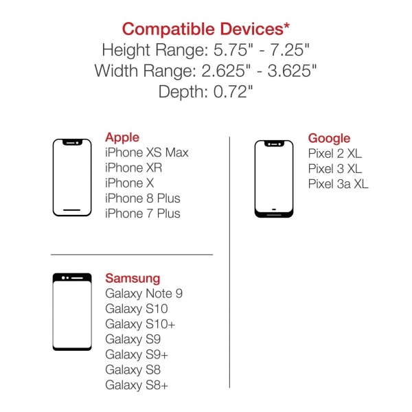 Büyük boyutlu telefonlar için düşük profilli gidon montajı , tek bir düğmeyi çevirerek gidona kolayca takılan yeni RAM ® Tough-Strap ™ ve RAM ® Quick-Grip ™ XL içerir; 2,22 cm-2,54 cm, 2,54 cm-3,17 cm ve 3,17 cm-3,50 cm arasında değişen iki farklı gidon kayışı boyutu içerir.